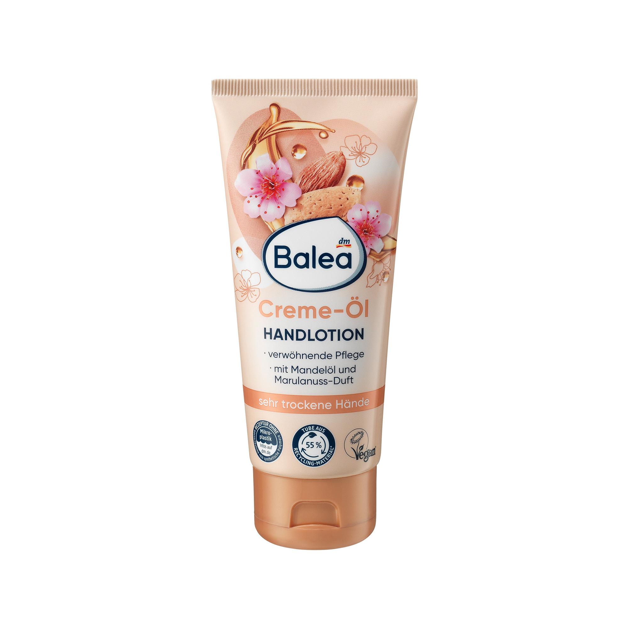 Die Balea Creme-Öl Handlotion eignet sich perfekt für sehr trockene Hände. Die verwöhnende Formulierung mit Mandelöl, Sheabutter und Marulnuss-Duft schenkt ein samtweiches Hautgefühl. Die reichhaltige Pflege schenkt beanspruchter Haut neue Geschmeidigkeit. Rezeptur ohne Mikroplastik und wasserlösliche rein synthetische Poylmere.