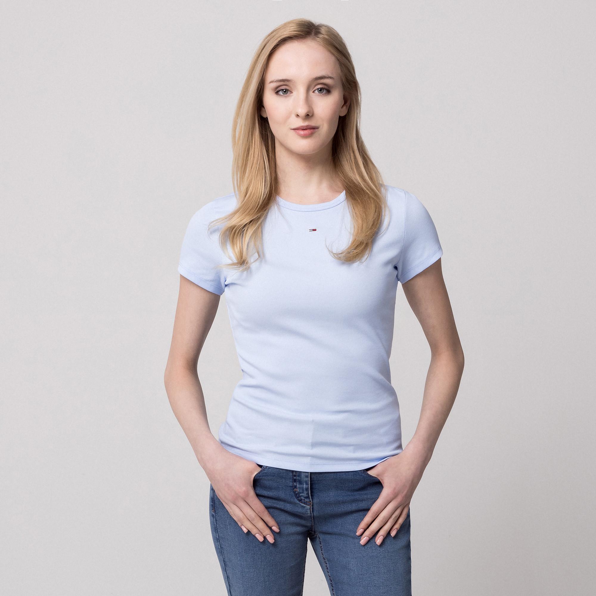 Dieses T-Shirt von Tommy Jeans aus dehnbarem Rippstrick, mit kurzem Arm, Rundhalsausschnitt und aufgesticktem Flag Patch ist ein hochwertiges Basic, das zu eleganten Business Looks genauso gut aussieht wie zu lässigen Freizeit-Styles.