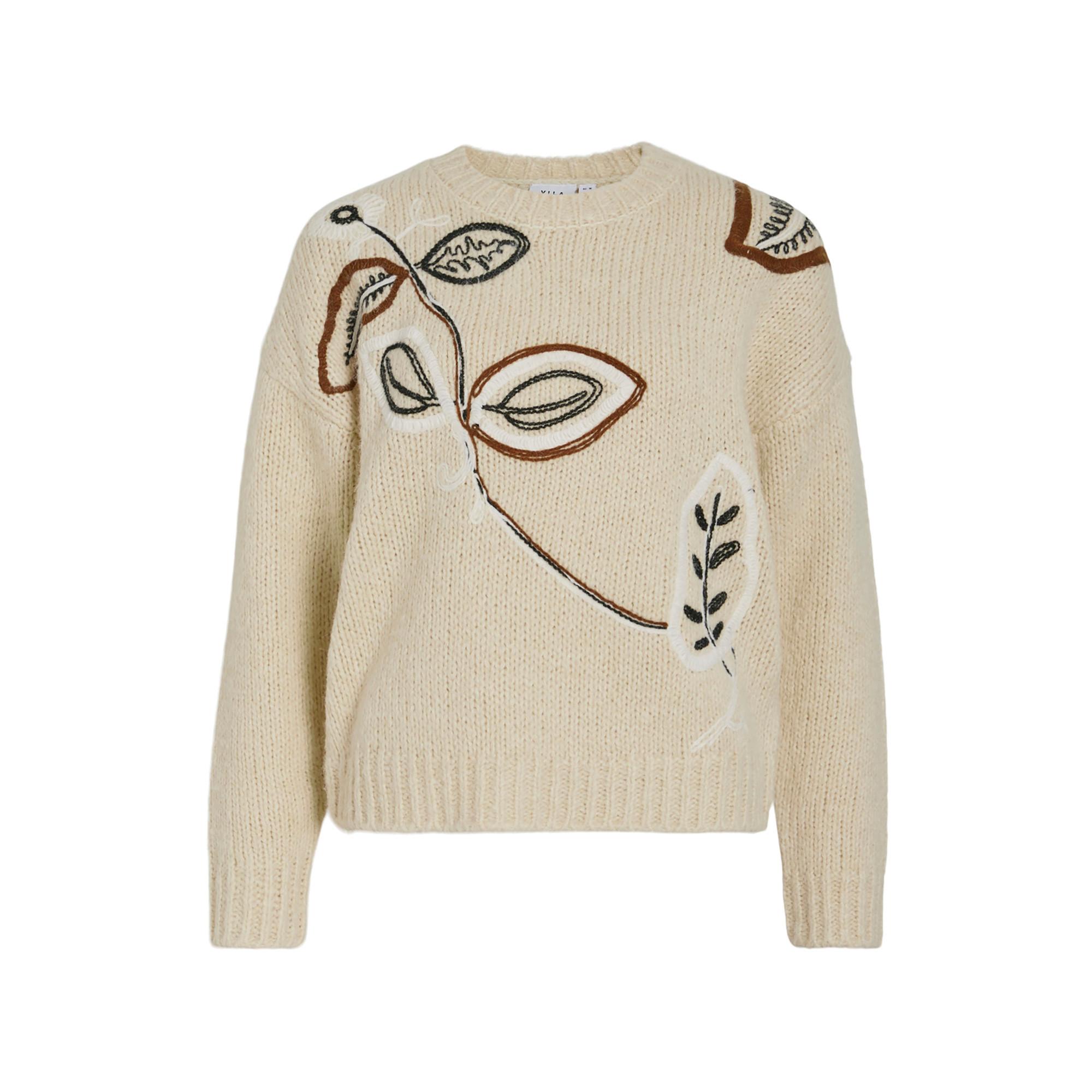VILA, Pullover mit gesticktem Blattdesign