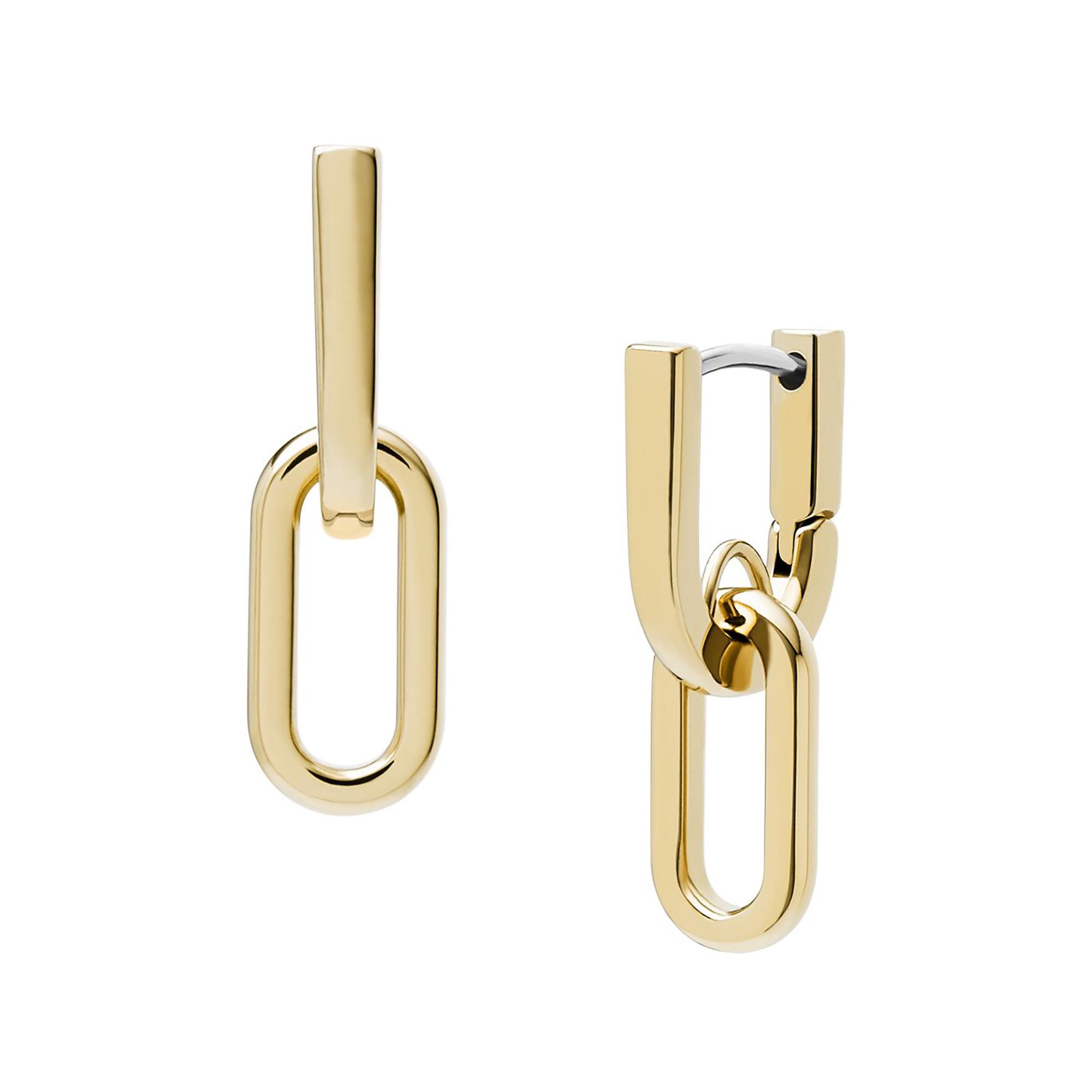 Die Schmuckkollektion Fossil Heritage feiert ausgefallenes und zeitloses Design. Diese goldfarbenen Hängeohrringe mit dem Heritage D-Link haben ein gebürstetes Finish.