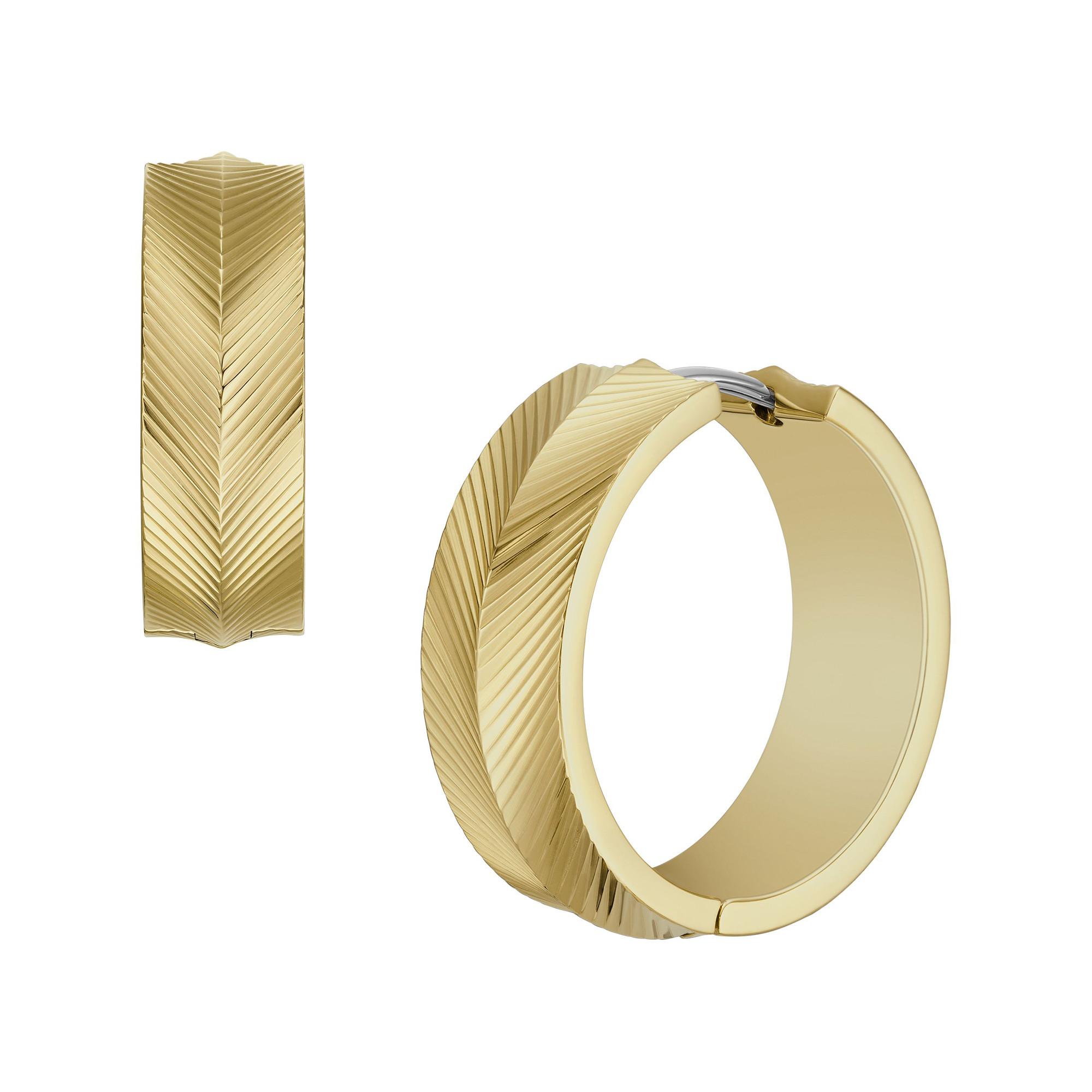 Diese fein geätzten, strahlenden Creolen-Ohrringe Harlow für jeden Tag gehören zu Fossils atemberaubendsten Accessoires. Die feine lineare Textur funkelt im Licht und sorgt für einen dezenten Glanz.