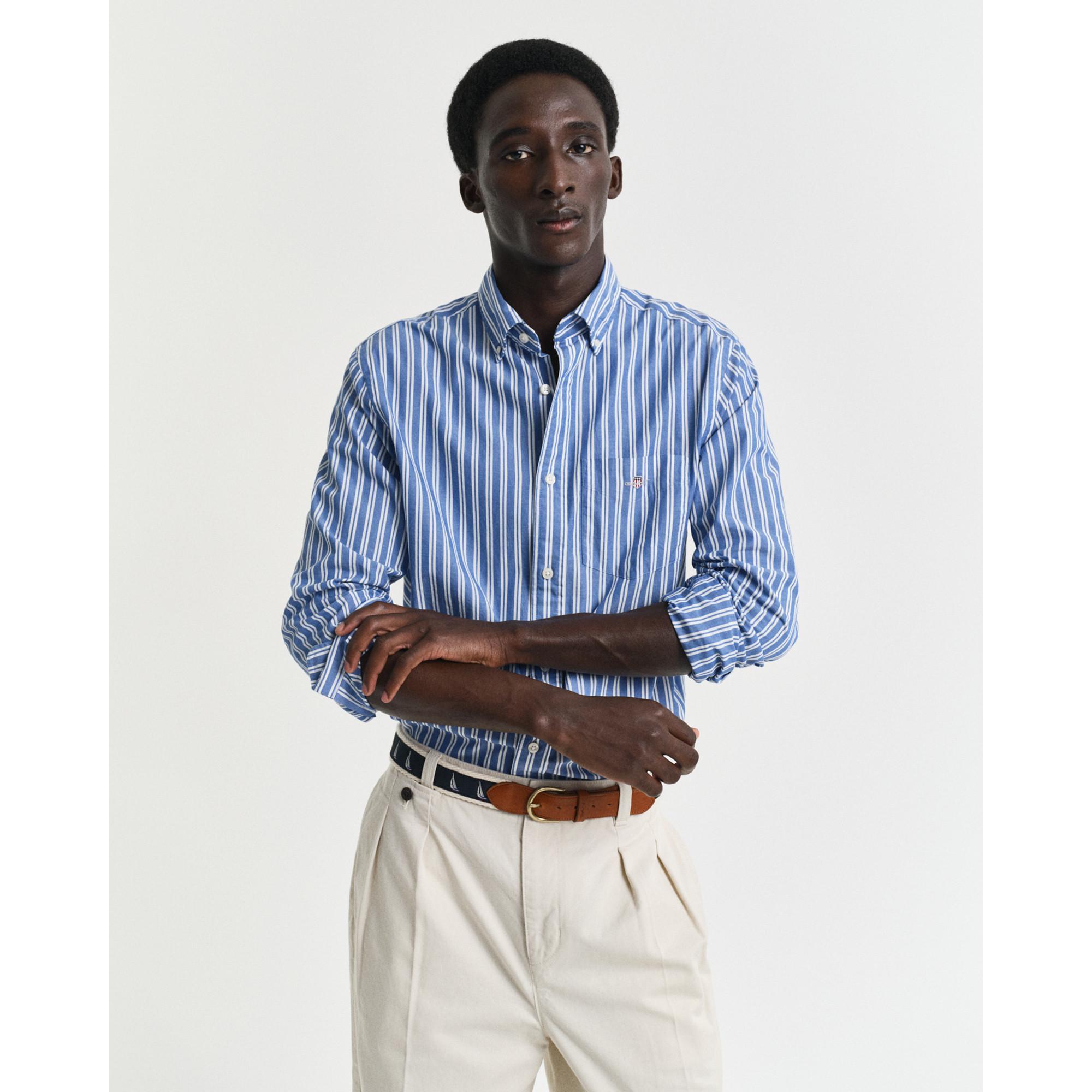 Dieses GANT Herren Hemd besteht aus langlebiger Baumwollpopeline und darf in keiner Preppy-Garderobe fehlen. Es ist im Regular Fit geschnitten und verfügt über klassische garngefärbte Streifen, einen Button-down-Kragen und einen abgerundeten Saum. Die für GANT charakteristische Locker-Loop-Schlaufe sowie die Kellerfalte am Rücken vollenden das Design. Auf der Brusttasche ist eine GANT-Wappengrafik im Retro-Stil aufgestickt, die dem Design einen Hauch von Vintage vermittelt.