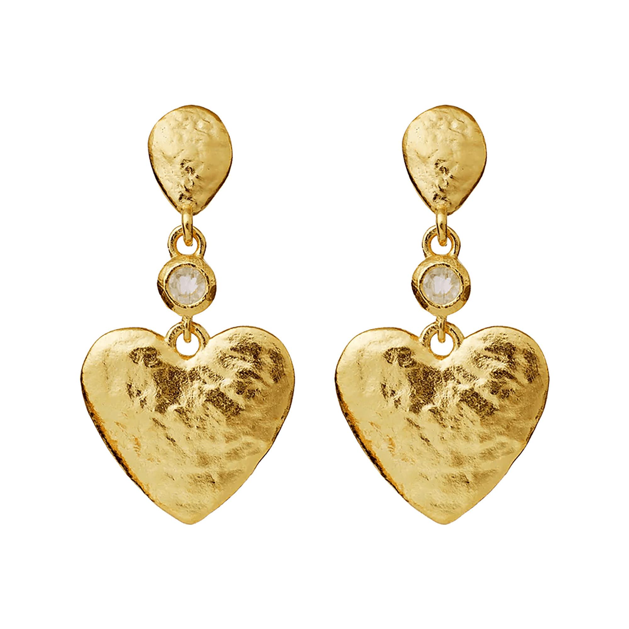 Die herzförmigen Adelaide-Ohrringe symbolisieren reine Herzensgüte und strahlen mit regenbogenfarbenen Mondsteinen Balance und Hoffnung aus. Gefertigt aus 925er Silber mit 18 Karat Goldbeschichtung, vereinen sie Eleganz und positive Energie.