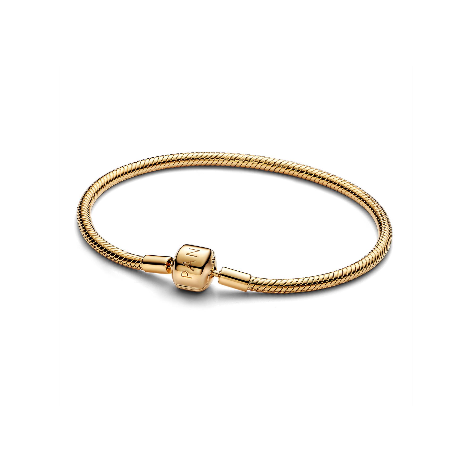 Trage deine Lieblingscharms mit unserem Schlangen-Gliederarmband mit Kugelverschluss und Gold-Plattierung. Der Kugelverschluss ist seit jeher ein unverkennbares Designmerkmal von Pandora und war Teil unseres ersten Schlangen-Gliederarmband-Designs. Hier erhält es ein modernes Update und wird mit eleganten Details neu interpretiert. Feiere mit diesem ikonischen Stück die Geschichte von Pandora und lass dieses Basis-Stück als Teil deiner Sammlung weiterleben.