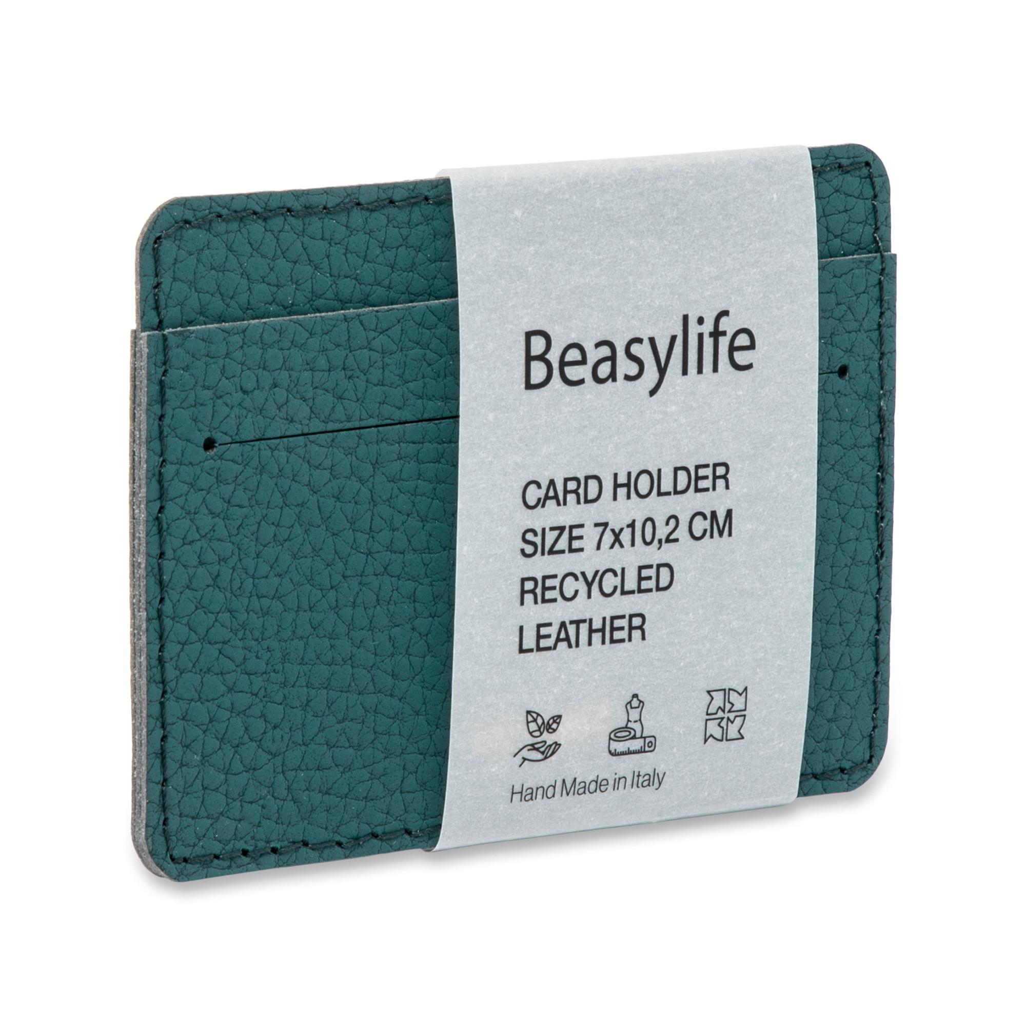 Dieses Karten-Etui ist zu 100% aus recycelter Leder-Faser gefertigt. Es ist uni und fein genarbt. Das schlanke Design lässt sich mit den wichtigsten Karten oder Bargeld in fast jeder Tasche mitführen, selbst in Notizbüchern und dem berühmten Hosensack.