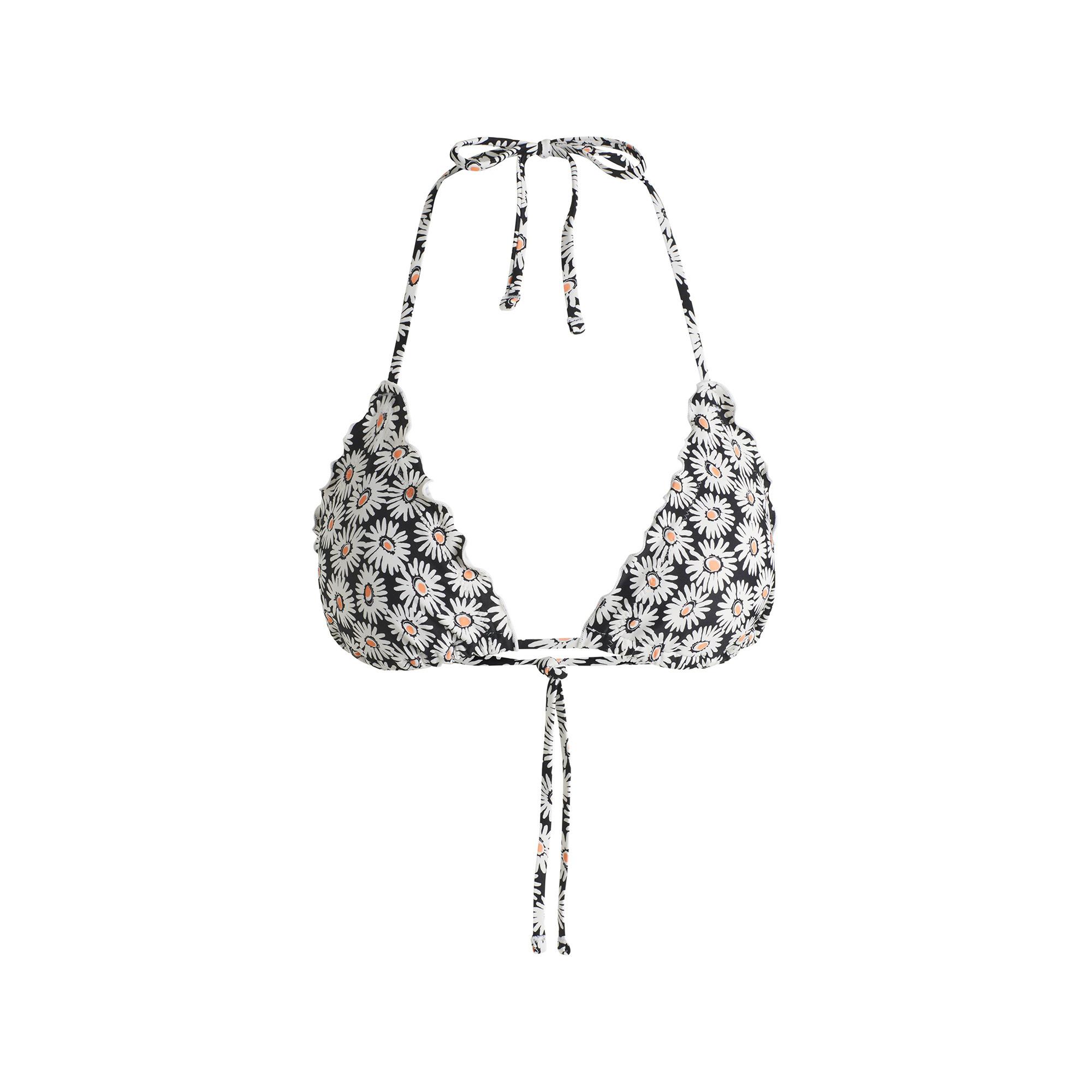 Das Neckholder-Bikinitop mit Rüschenrand ist in unifarbenem oder bedrucktem Design erhältlich. Es verfügt über herausnehmbare Polster und einen Anhänger mit Stack-Logo. Dieses Produkt wird aus recyceltem Polyamid hergestellt, das aus Materialabfällen und gebrauchten Stoffresten oder industriellen Fischernetzen gewonnen wird.