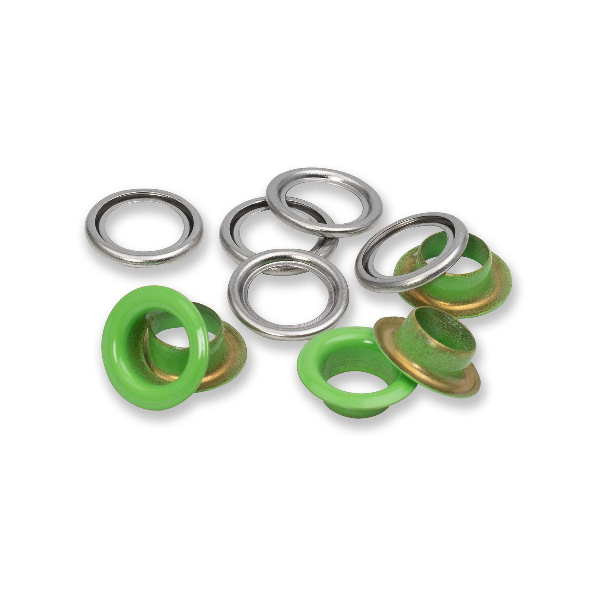 - Bunte Ösen: Hellgrün & silberfarbig