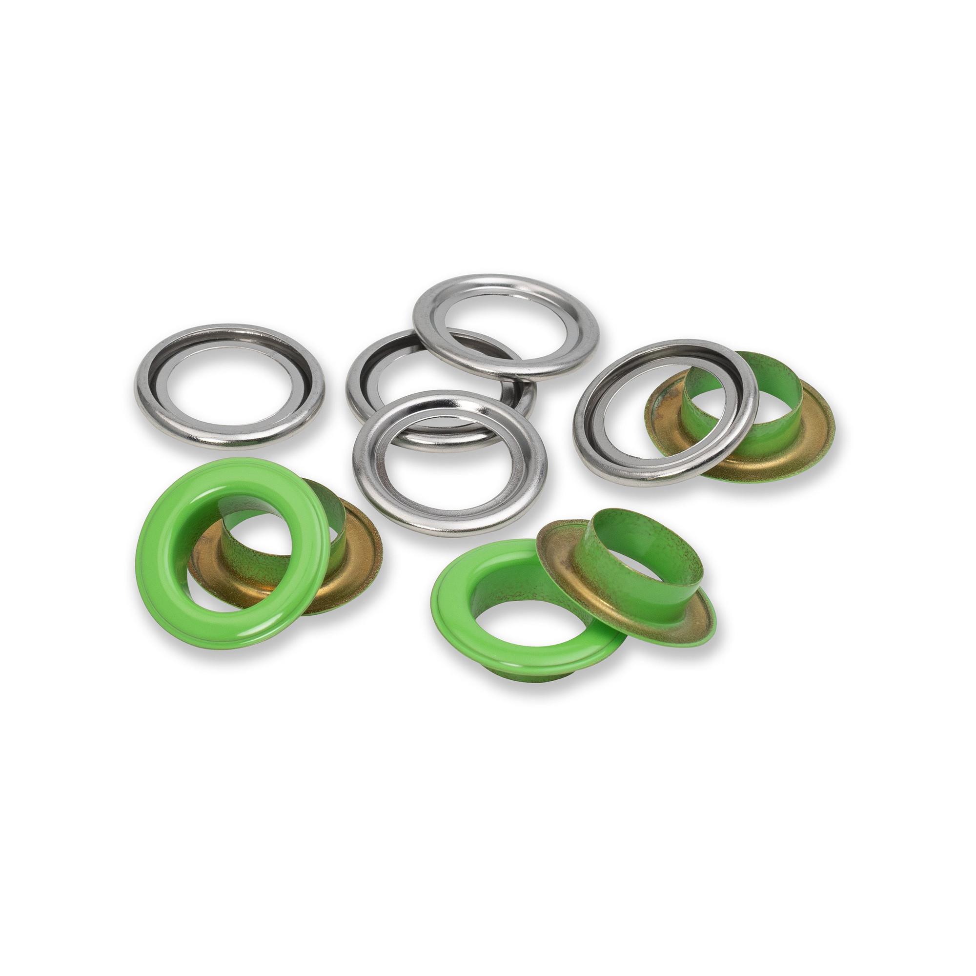 - Bunte Ösen: Hellgrün & silberfarbig