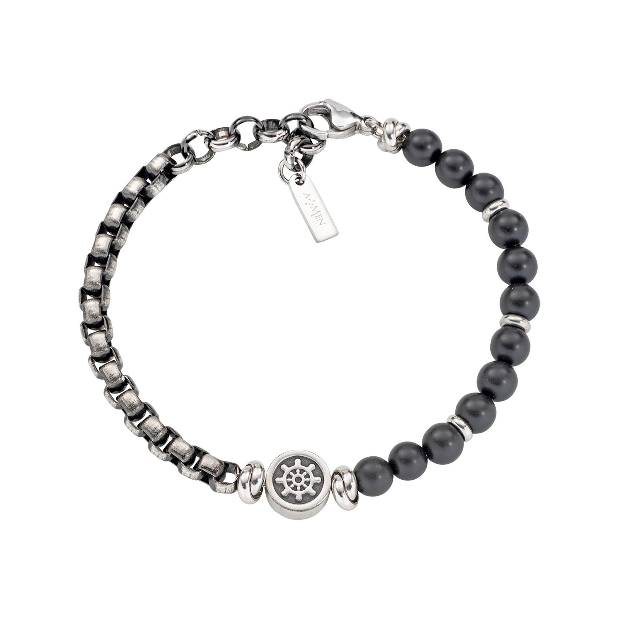 Dieses elegante Herrenarmband aus Edelstahl besticht durch seine gebürstete Oberfläche und die stilvollen schwarzen Onyx-Steine. Mit einem Gewicht von 15,7 g vereint es Robustheit und zeitlose Eleganz.