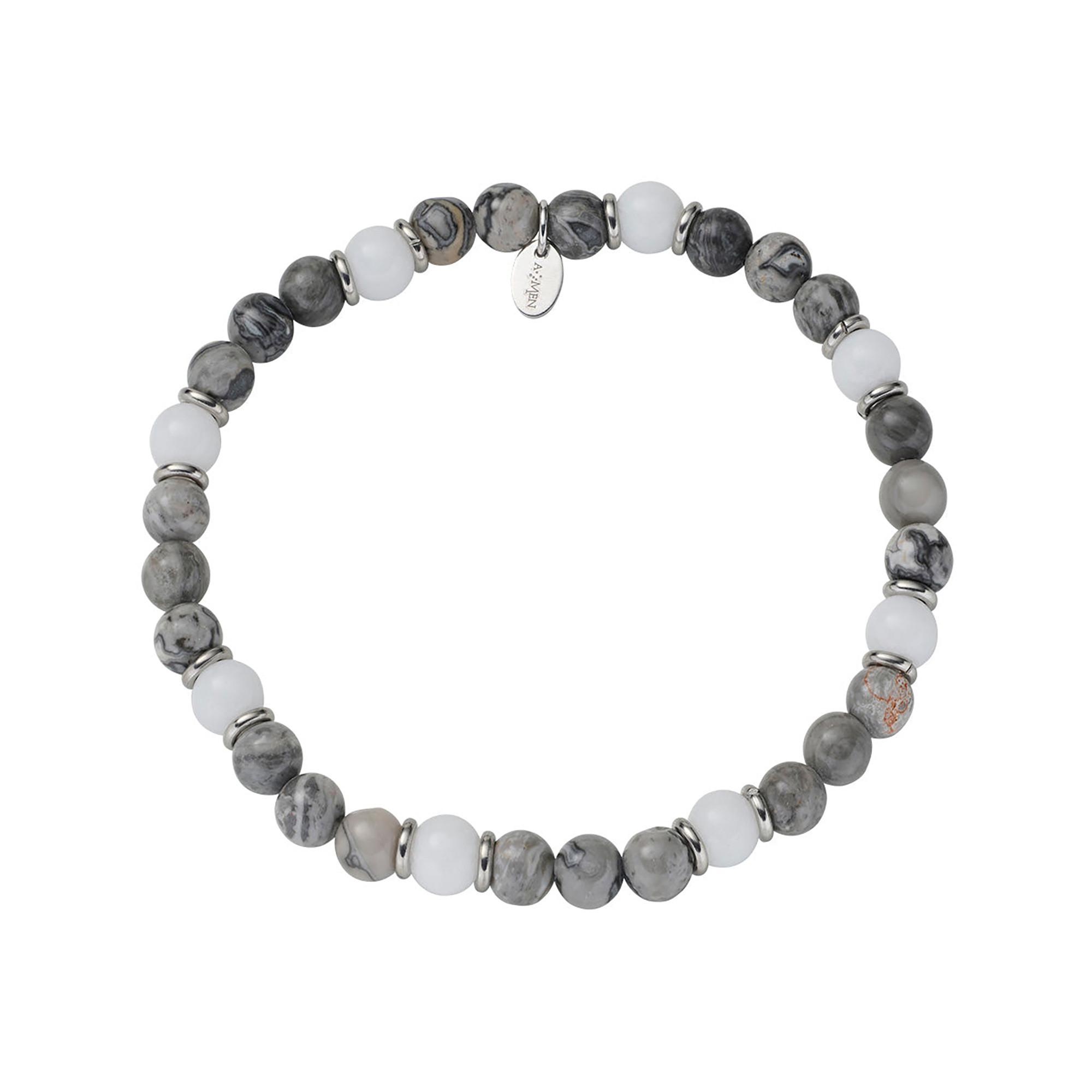 Stilvolles Armband aus Edelstahl mit langlebiger Stahloberfläche, verziert mit farbenfrohen Achatperlen. Leichtes Design von nur 12 g, ideal für modebewusste Männer.