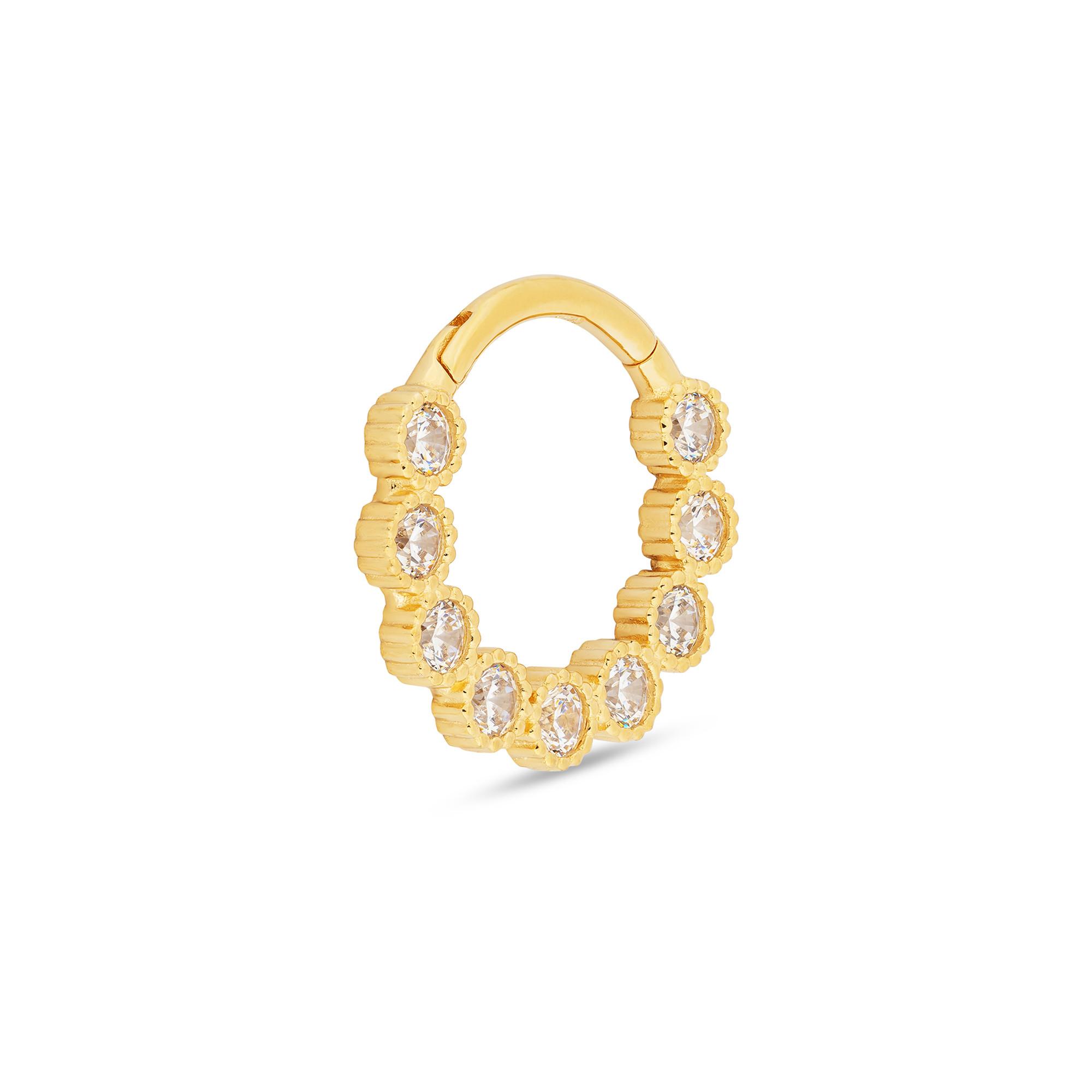 Dieses Piercing von Studio Marquise aus 18-karätigem Gelbgold ist mit lichtdurchlässig gefasstem Zirkonia besetzt. Es hat einen klassischen Hoop-Verschluss und ist ein vielseitiges, edles Schmuckstück mit aktuell trendigem Design.