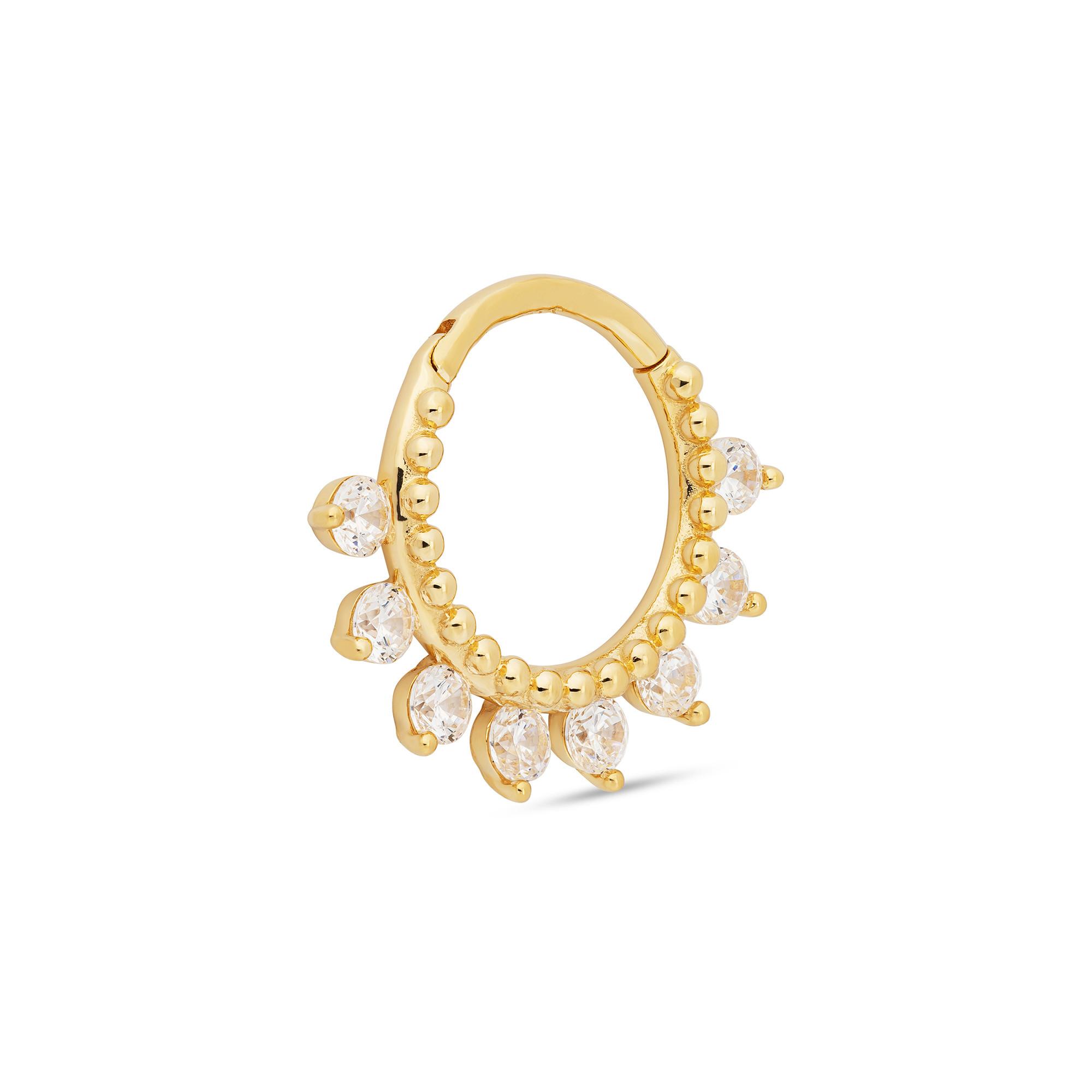 Dieses Piercing von Studio Marquise aus 18-karätigem Gelbgold ist mit lichtdurchlässig gefasstem Zirkonia besetzt. Es hat einen klassischen Hoop-Verschluss und ist ein vielseitiges, edles Schmuckstück mit aktuell trendigem Design.