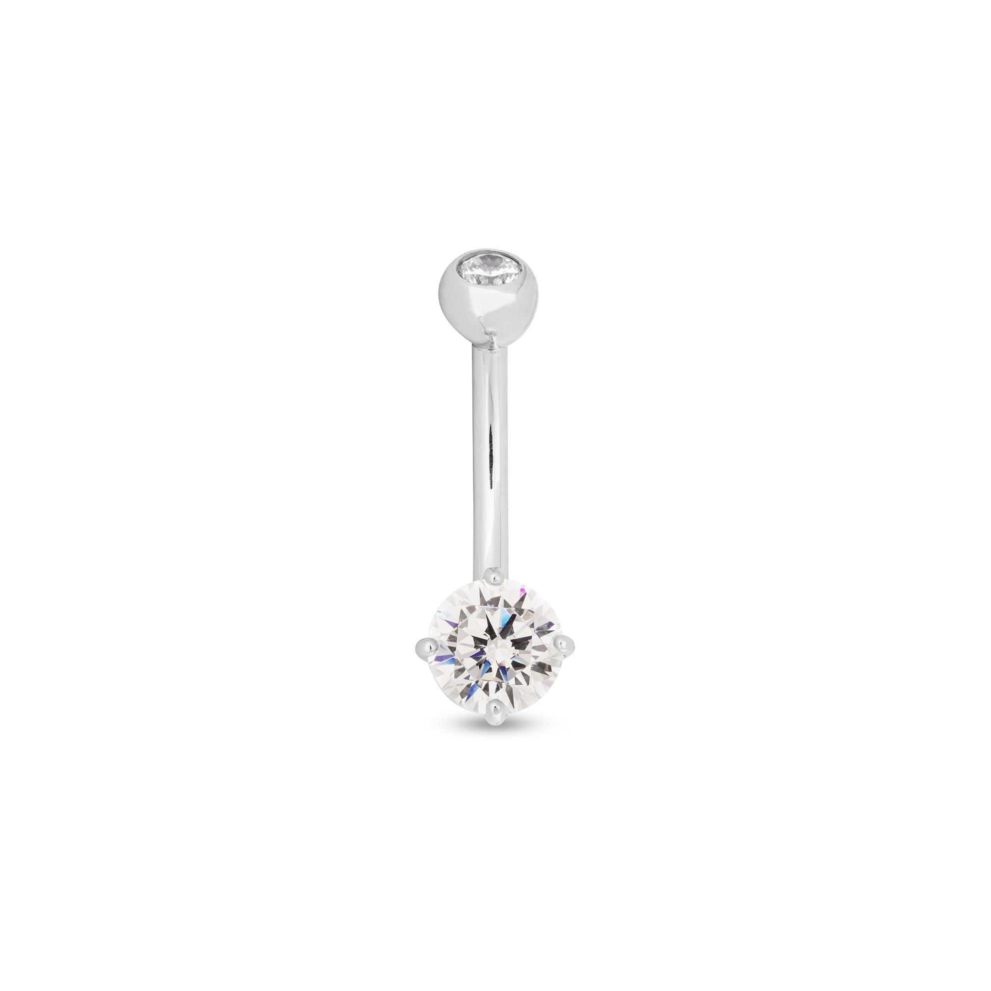 Dieses Bauchnabelpiercing von Studio Marquise aus 18 Karat Gold mit Zirkonia-Steinen an beiden Enden ist mit einem klassischen Schraubverschluss ausgestattet. Das vielseitige Schmuckstück kann individuell getragen und kombiniert werden.