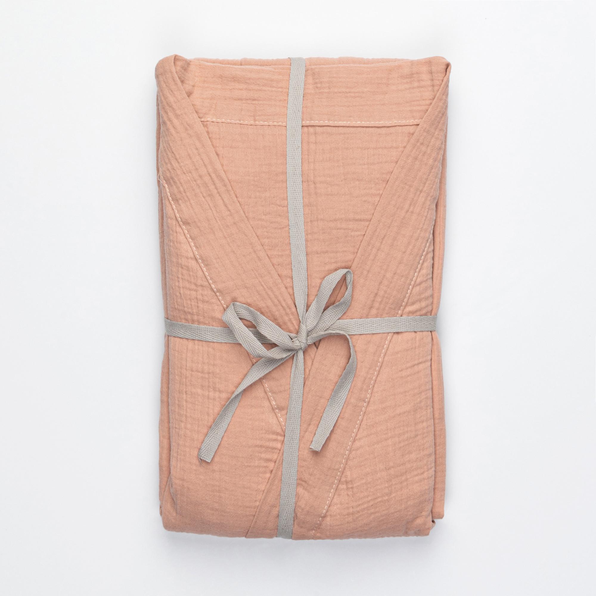 Dieser Oyama Kimono aus weichem Musselin aus reiner Baumwolle ist mit weitem bequemem Schnitt, breitem Bindegürtel und 3/4-Ärmeln ein sinnliches Highlight, das mit puristischem Style und hohem Tragekomfort Spa-Gefühle beschert.