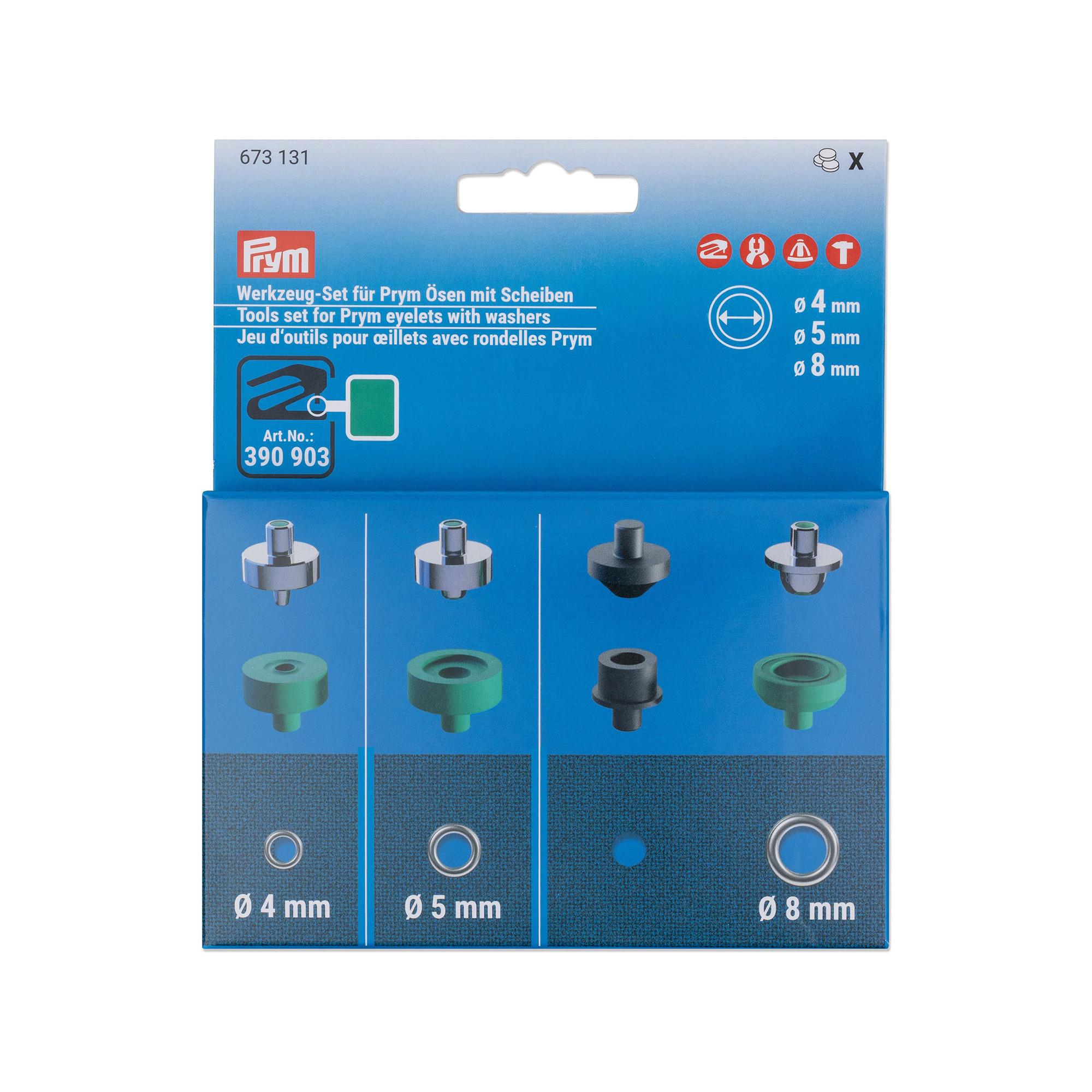 - Zum Anbringen von Prym Ösen mit Scheiben Ø 4, 5 und 8 mm