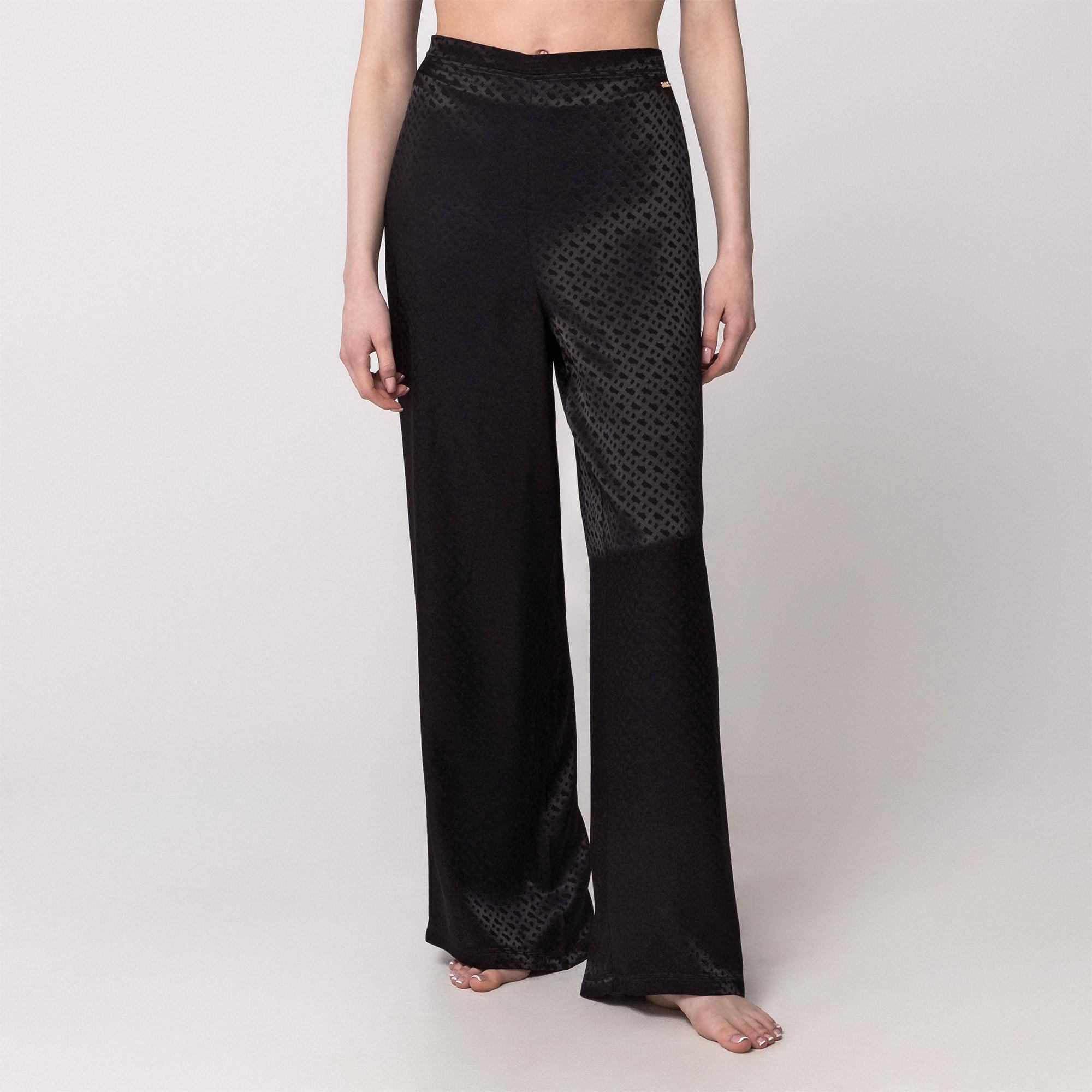 Diese Hose bietet eine entspannte und dennoch raffinierte Silhouette. Das Design verfügt über ein dezentes Allover-Muster, das dem Kleidungsstück einen Hauch von Eleganz verleiht. Ein elastischer Bund sorgt für eine bequeme Passform, während der weite Beinschnitt Bewegungsfreiheit und einen fliessenden Fall bietet.