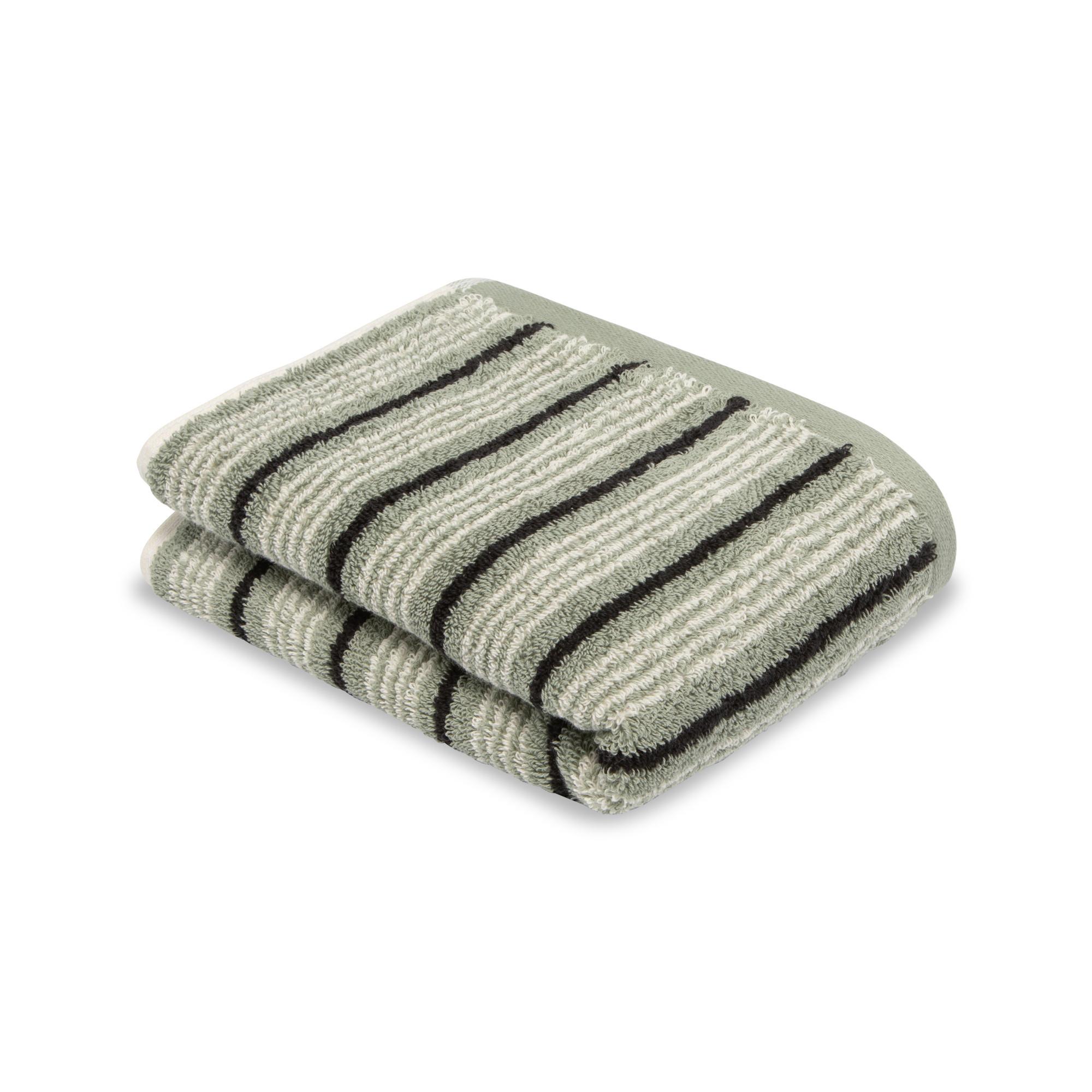 Dieses Handtuch von Manor ist Teil des Frottierwäsche-Sets Verona. Es ist aus hochwertigem Frottee aus reiner Baumwolle hergestellt, flauschig weich und saugfähig, mit klassischem Streifen-Design.
