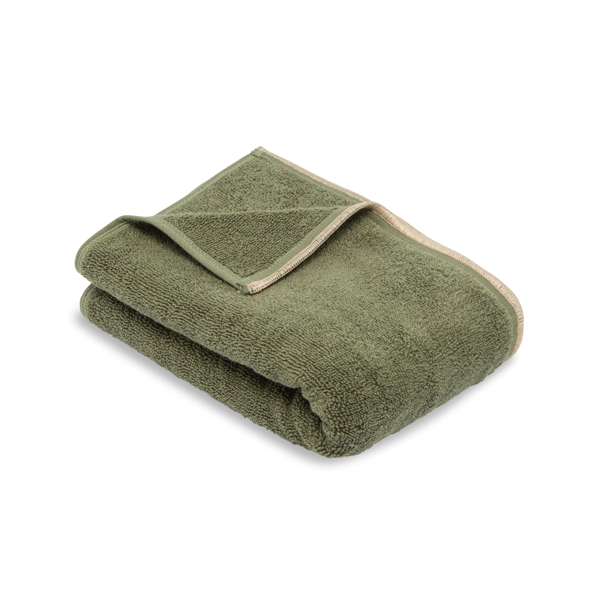 Dieses Handtuch von Manor besteht aus weichem Frottee aus reiner Baumwolle. Es ist mit einem kontrastfarbenen Abschluss und einer Aufhängeschlaufe versehen.