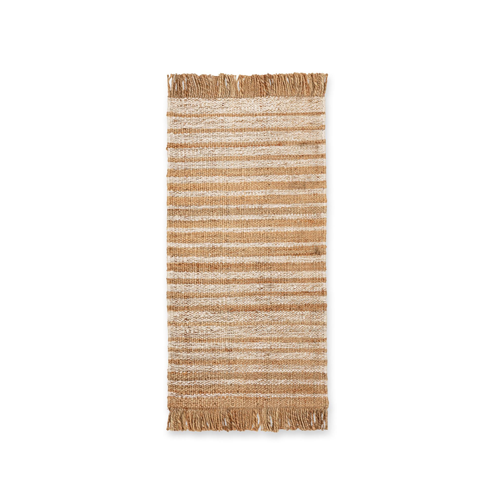 Dieser Jute-Teppich von Manor verleiht dem Interieur mit seiner schlichten, natürlichen Ausstrahlung eine rustikale Note. Der Teppich ist gewebt, hat ein Blockstreifenmuster und breite Fransen.