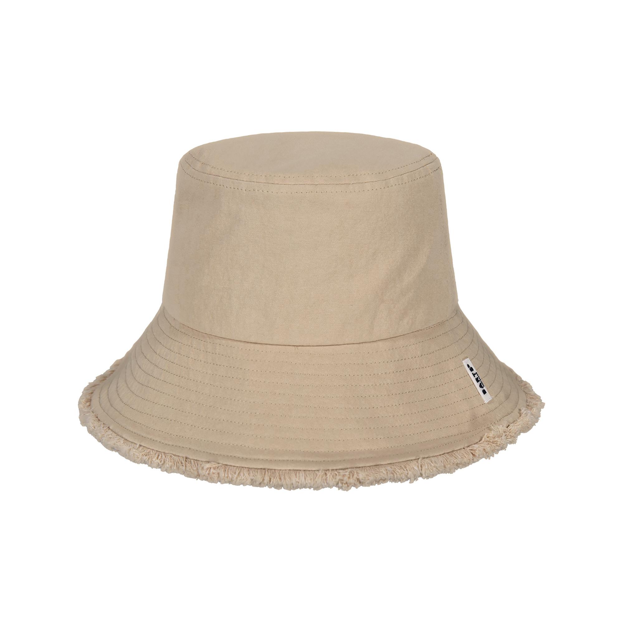 Der Huahina Hut von BARTS ist ein Sommerhut mit ausgefransten Kanten, hergestellt aus 50% recycelter Baumwolle. Er ist größenverstellbar.