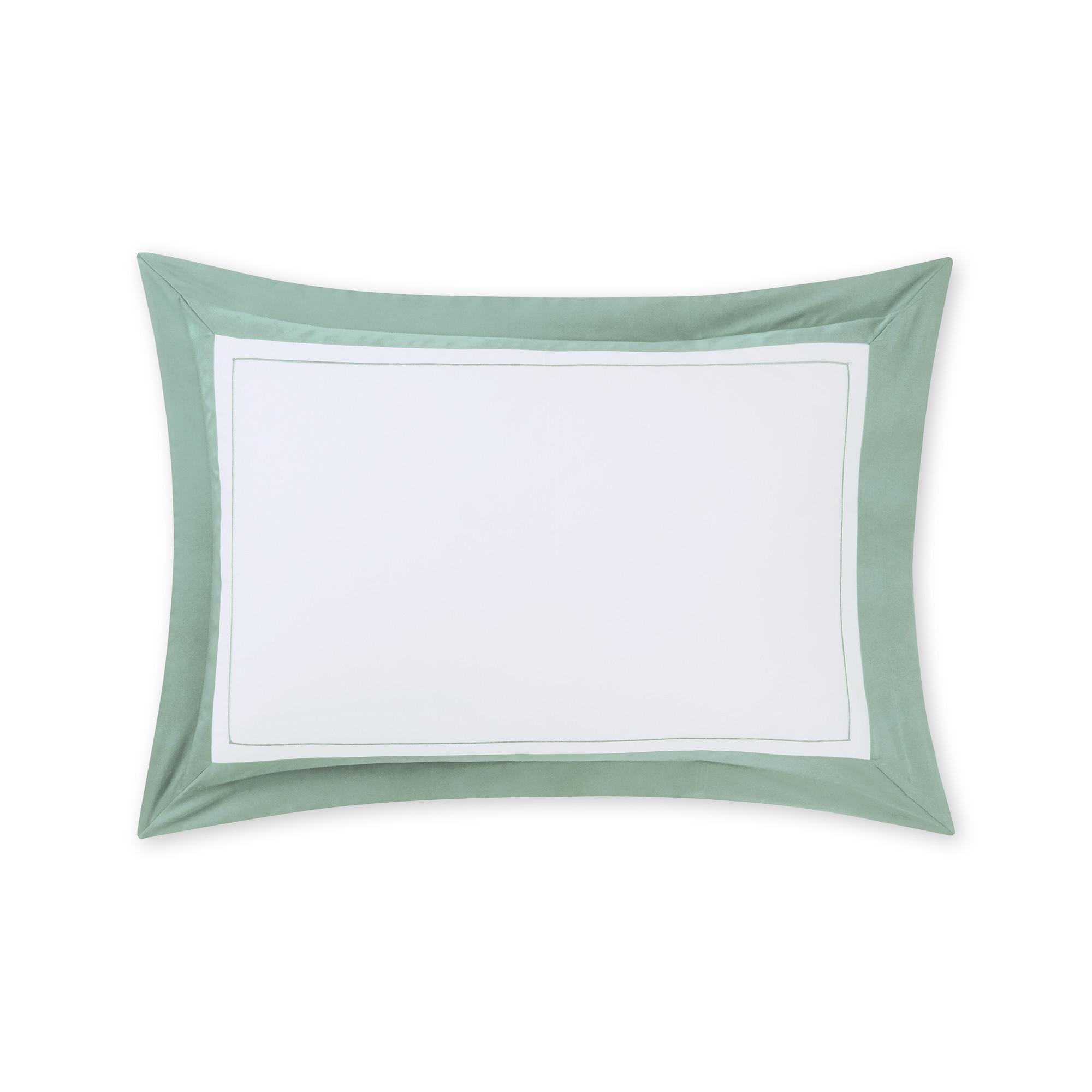 Dieser Kissenbezug besteht aus 100% langstapeligem, gekämmtem Bio-Baumwollsatin mit einer Fadenzahl von 300. Er verfügt über eine Flanschverarbeitung mit kontrastierendem Bourdonstich. Das Design vereint Schlichtheit und Eleganz, mit strahlend weissem Satin, angereichert mit einer farbigen Bordüre und einem gestickten Bourdonstich in verschiedenen Farben. Ein echter Klassiker des internationalen Dekors, der das Savoir-faire der Textilherstellung und Schneiderei unterstreicht.