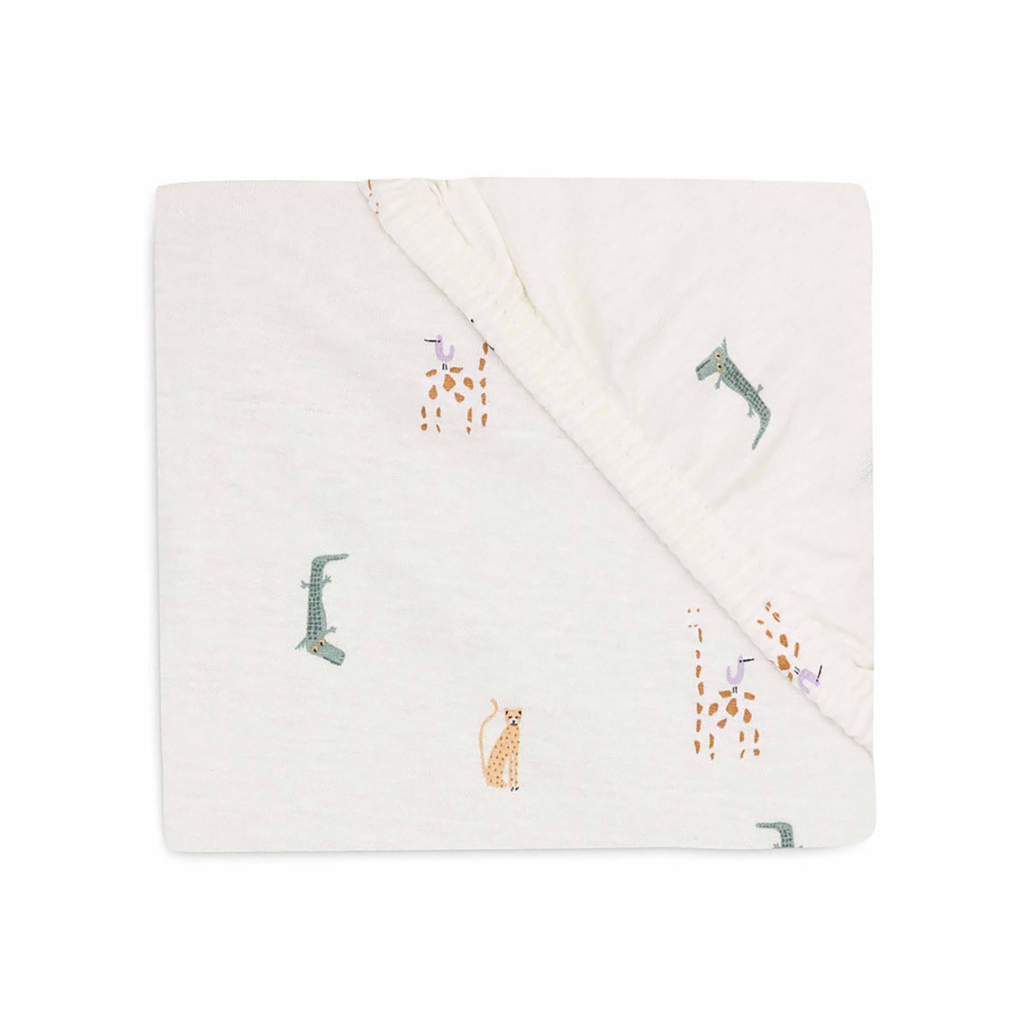 Dieses Spannbettlaken von Jollein aus der Kollektion Jungle Jambo besteht aus Jersey und sorgt für eine sichere und bequeme Passform auf der Matratze. Der fröhliche Print regt die Fantasie an und die Gummibänder an den Ecken gewährleisten, dass das Laken gut sitzt.