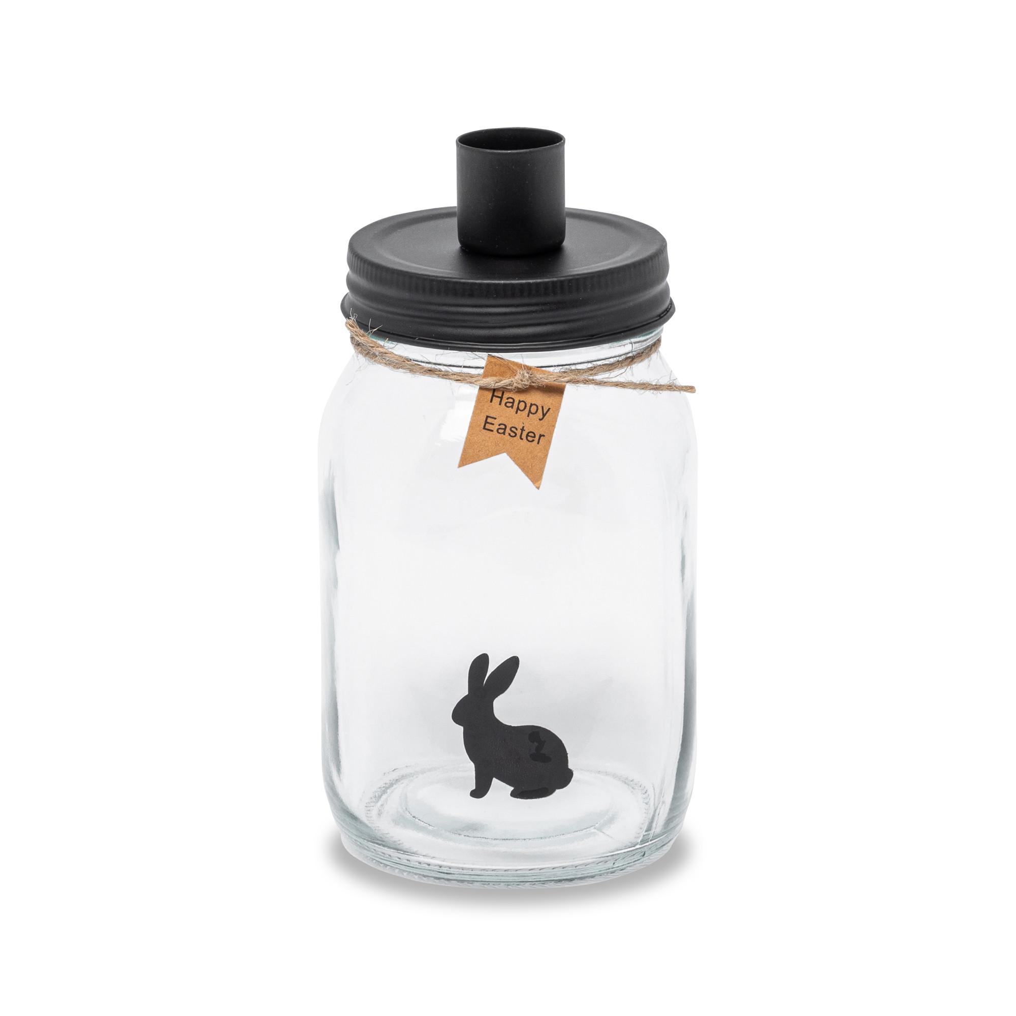 Dieses Glas mit Schraubdeckel und Kerzenhalter von Manor lässt sich nach Herzenslust befüllen – ein ideales Mitbringsel zum Osterbrunch für kreative, persönliche Geschenke.