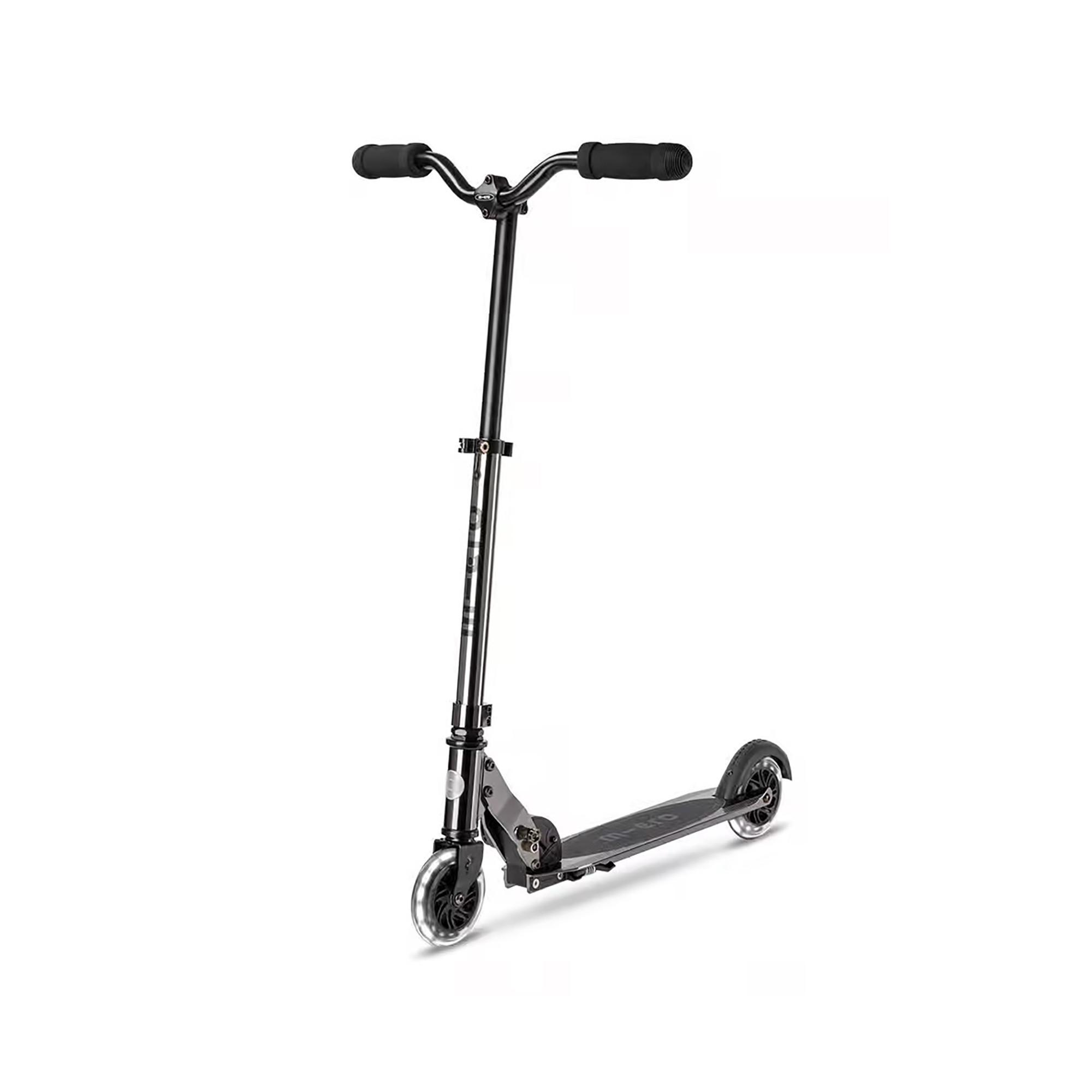 Der klassische Micro Sprite Scooter wird mit einem eleganten silbernen Chrom-Finish und hellen LED-Rädern an der Vorder- und Rückseite aufgewertet. Dieser leichte Aluminium-Scooter lässt sich mühelos handhaben, kompakt aufbewahren und einfach transportieren, was ihn perfekt für den Einsatz unterwegs macht. Mit einer Gewichtskapazität von bis zu 100 kg ist er für Kinder und Erwachsene geeignet. Mach dich bereit, mit Stil zu gleiten, Tag und Nacht!