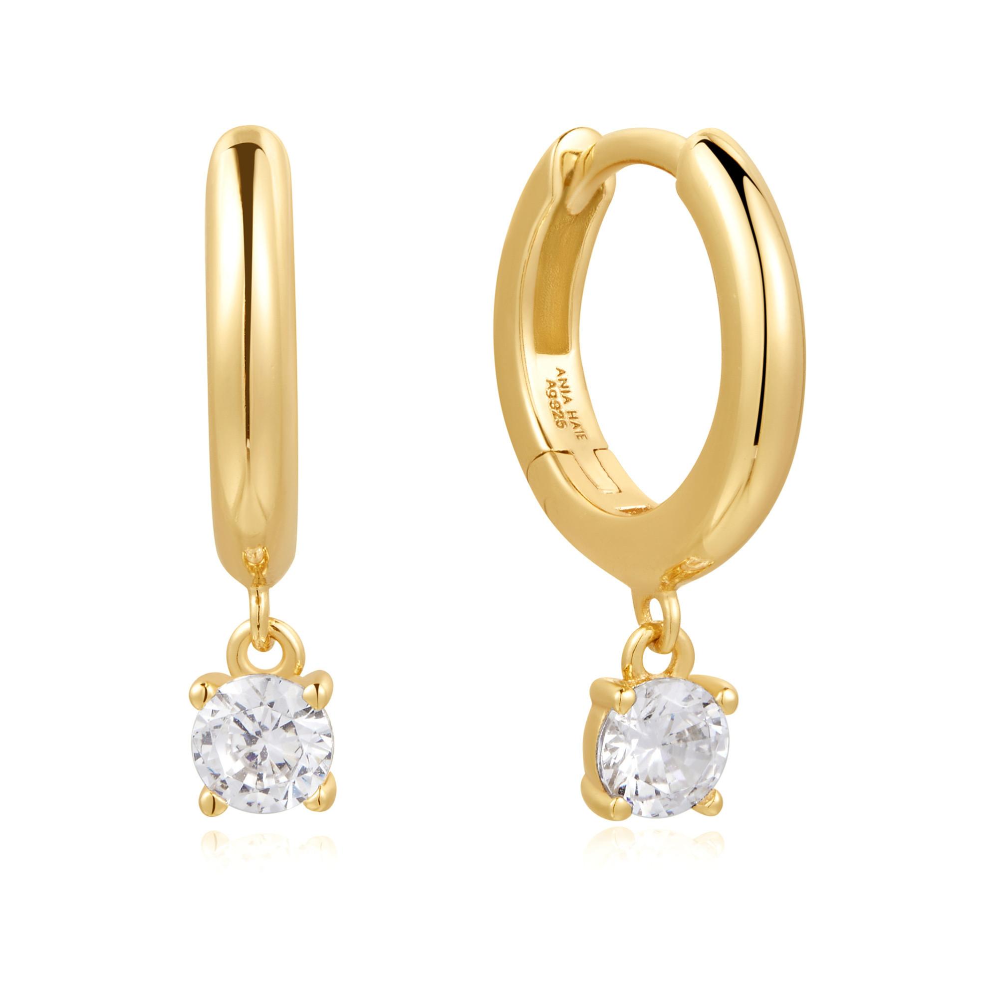 Diese Ohrstecker von Ania Haie sind aus 925 Sterling Silber gefertigt und mit 14kt Gold plattiert. Jeder Huggie ist mit einem einzelnen Tropfen aus Zirkonia verziert und eignet sich ideal für den täglichen Gebrauch. Sie können diese Ohrstecker sowohl allein als auch in Kombination mit schlichten Steckern oder Creolen tragen.