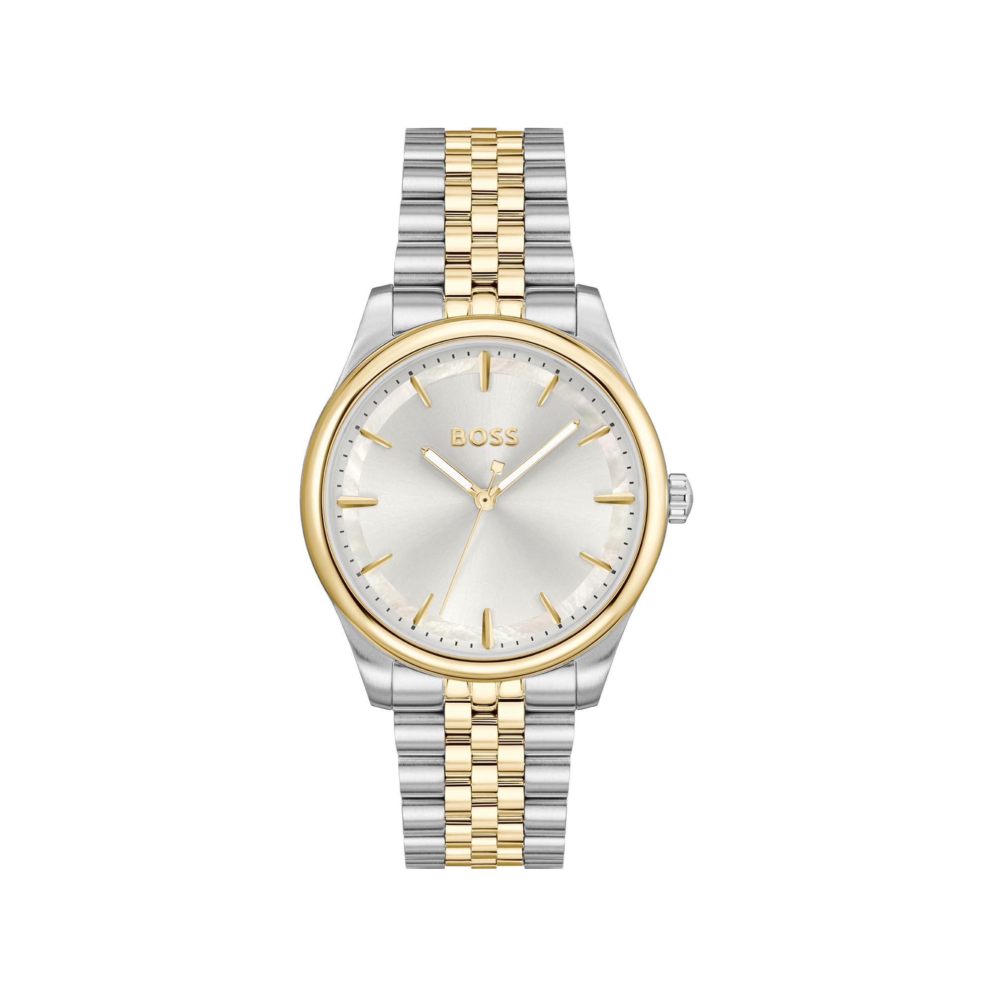 Diese Hugo Boss Uhr verfügt über ein Edelstahlgehäuse mit einem Durchmesser von 36 mm und ein Metallarmband. Das Uhrwerk basiert auf einem Miyota-Uhrwerk, und das Glas besteht aus Mineralglas. Die Uhr ist bis 3 ATM wasserdicht, was sie spritzwassergeschützt macht.