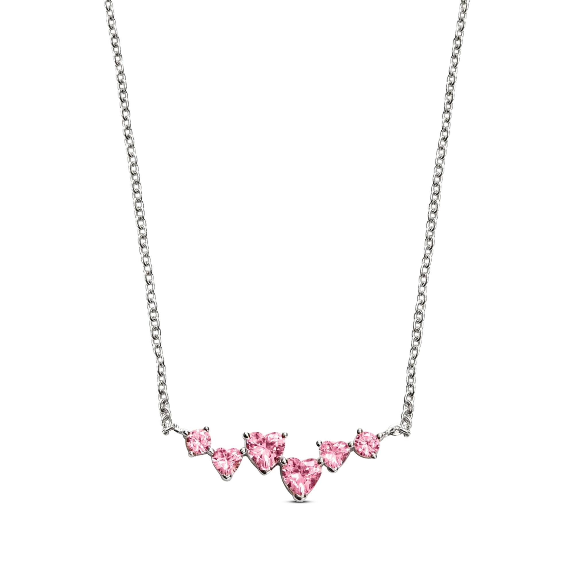 Diese Damenkette von Chiara Ferragni aus der Silver Collection ist aus 925er Silber gefertigt und mit Herzen sowie rosafarbenen Steinen verziert.