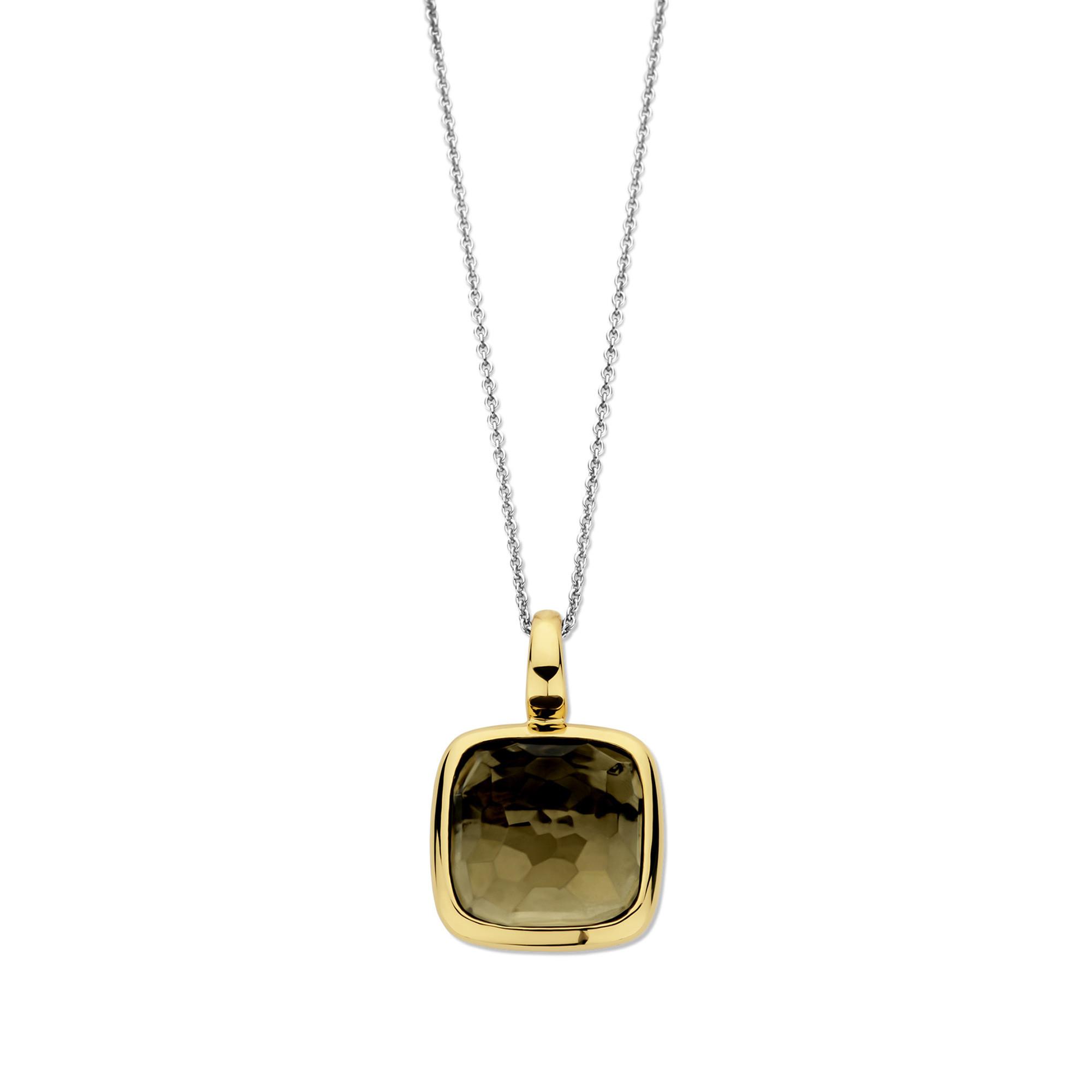 Dieser Anhänger von Ti Sento – Milano besteht aus 925er Silber, das mit Gelbgold plattiert ist, und ist mit einem transluzenten khakifarbenen Kristall verziert. Der Anhänger besticht durch die harmonische Verbindung von traditionellem Design und modernem Stil.
