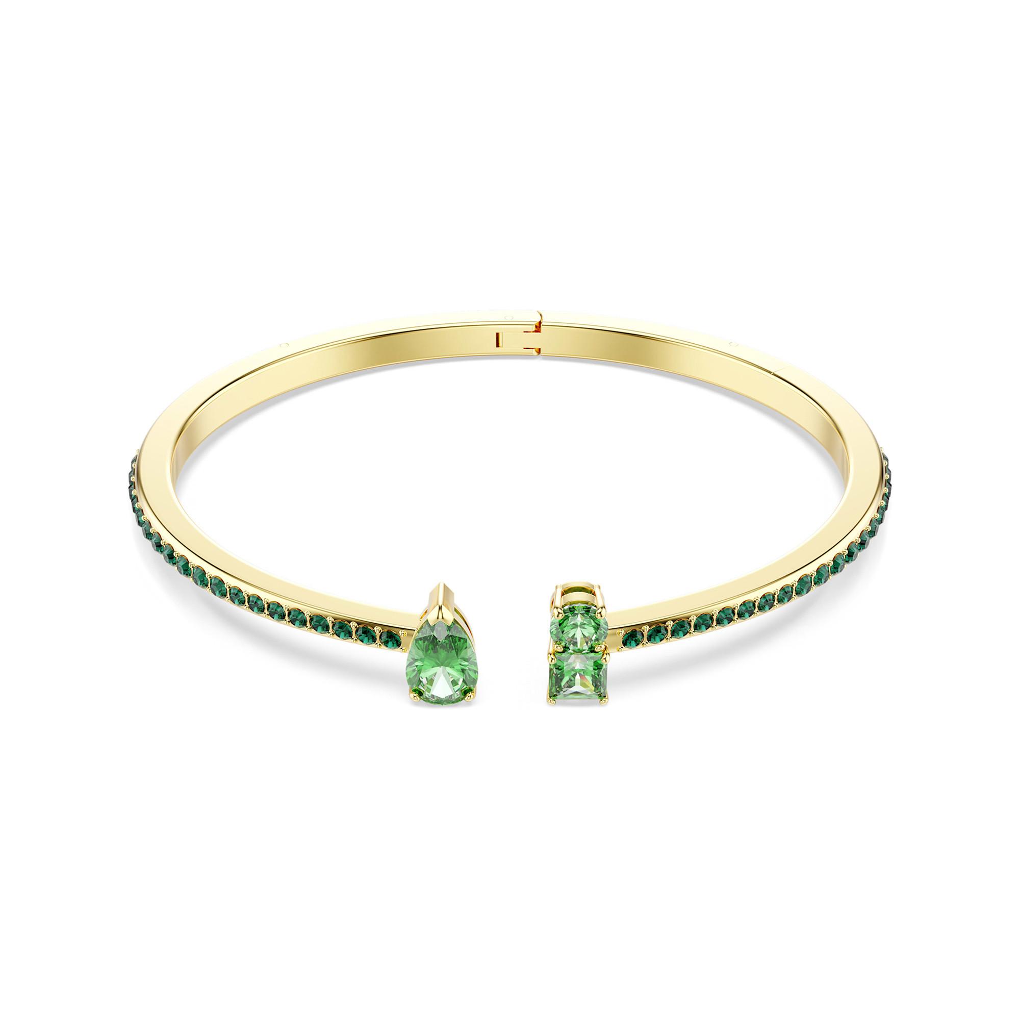 Diese attraktive Matrix Armspange besticht mit einer zeitlos schönen Kombination aus grünen Kristallen und glänzender Goldlegierungsschicht. Dieser Look liegt immer im Trend! Das Scharnierdesign in schimmerndem Pavé schmiegt sich perfekt an Ihr Handgelenk und schließt den Look an beiden Enden jeweils mit einem Kristallelement in verschiedenen Schliffen ab. Diese nahezu hypnotisch anziehende Kreation ist die perfekte Ergänzung für Ihre Style Story.