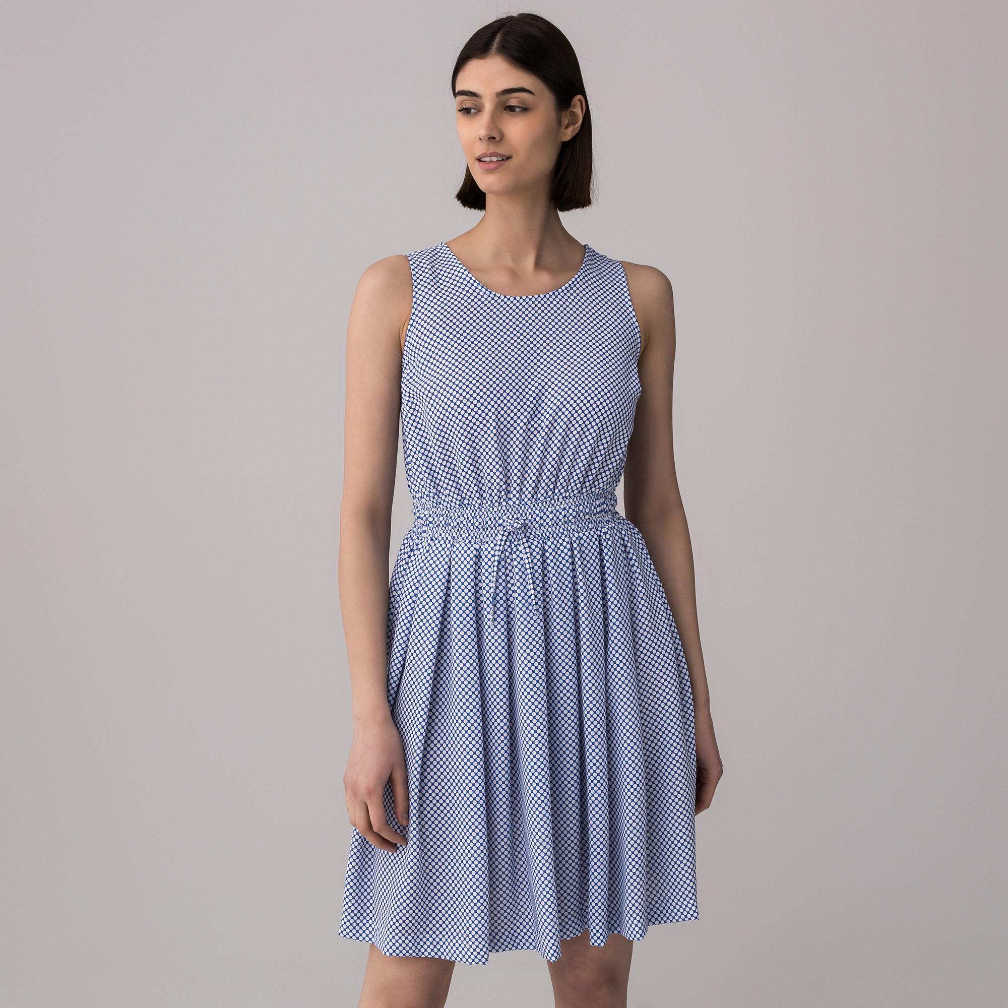 Dieses Kleid hat eine breite, elastische Taille mit Tunnelzug und ist ärmellos. Der Grafik-Print und der geschwungene Rockteil mit A-Linie kreieren einen erfrischenden Look.