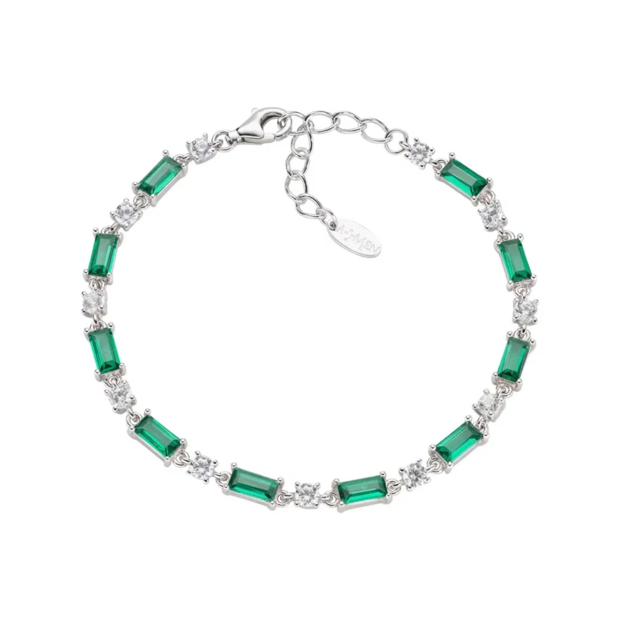 Das Amen Baguette Cut Tennis Armband aus 925er Silber überzeugt durch Zirkonia-Steine und einen sicheren Karabinerverschluss. Die verstellbare Länge von 16 bis 19 cm sorgt für eine perfekte Passform.