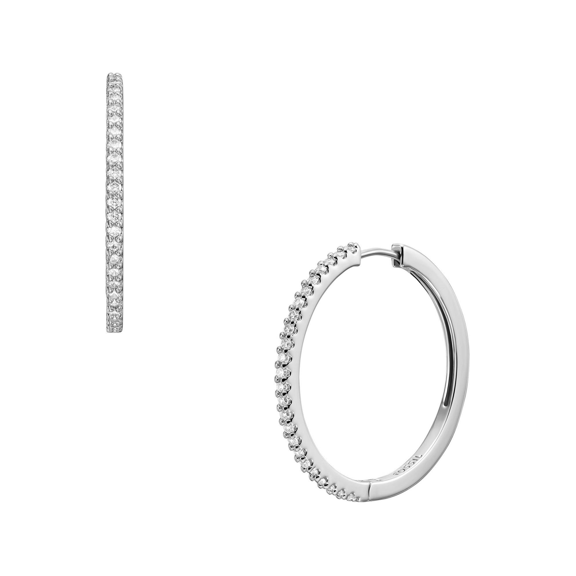 Diese Fossil Creolen-Ohrringe Ellis All Stacked Up für Damen sind aus hochwertigem Edelstahl gefertigt und mit halbseitigem Pavé-Zirkonia besetzt, was ihnen einen funkelnden Look verleiht. Der komfortable Scharnier-Verschluss sorgt für eine sichere Passform. Die Ohrringe können solo im Alltag getragen oder mit anderen Ohrringen kombiniert werden, um einen individuellen Look zu kreieren.