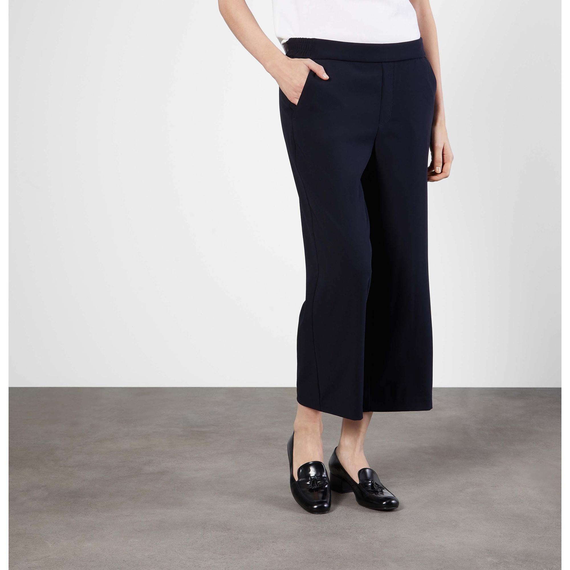 Diese feminine Culotte von Mac Jeans besticht durch ihren weiten, geraden Schnitt und die verkürzte Länge. Der elastische Bund sorgt für hohen Tragekomfort, während der Kreppstoff einen weich-fliessenden Fall bietet. Mit seitlichen Eingrifftaschen vorne und Paspeltaschen hinten kombiniert sie Eleganz mit einem angehauchten sportiven Look.