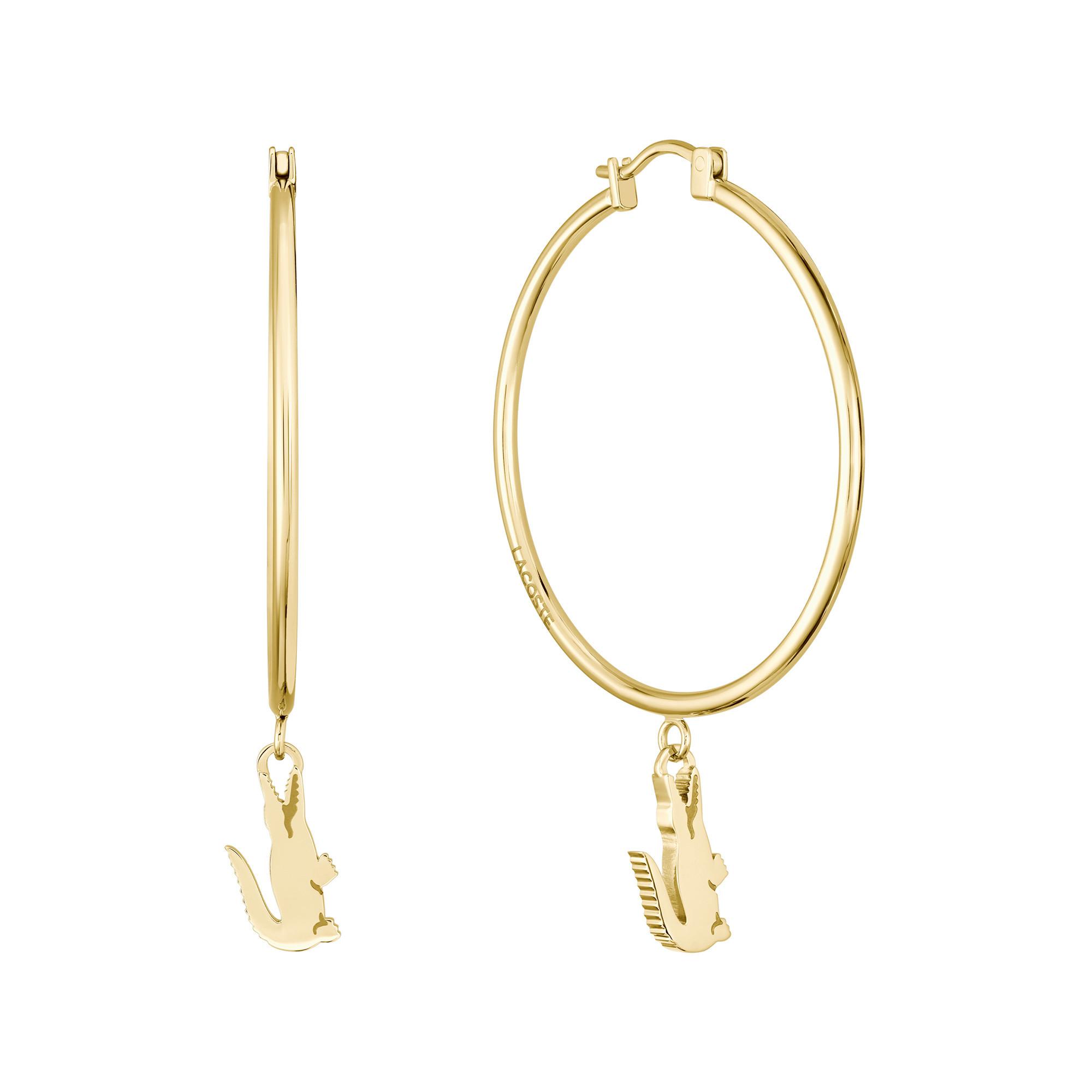Diese Kreolen von Lacoste sind aus langlebigem Edelstahl gefertigt und mit einem dezenten Krokodil-Detail verziert, das die sportlich-elegante Note der Marke unterstreicht. Sie bieten leichten Tragekomfort und eignen sich durch ihr zeitloses Design für den täglichen Gebrauch und besondere Anlässe.