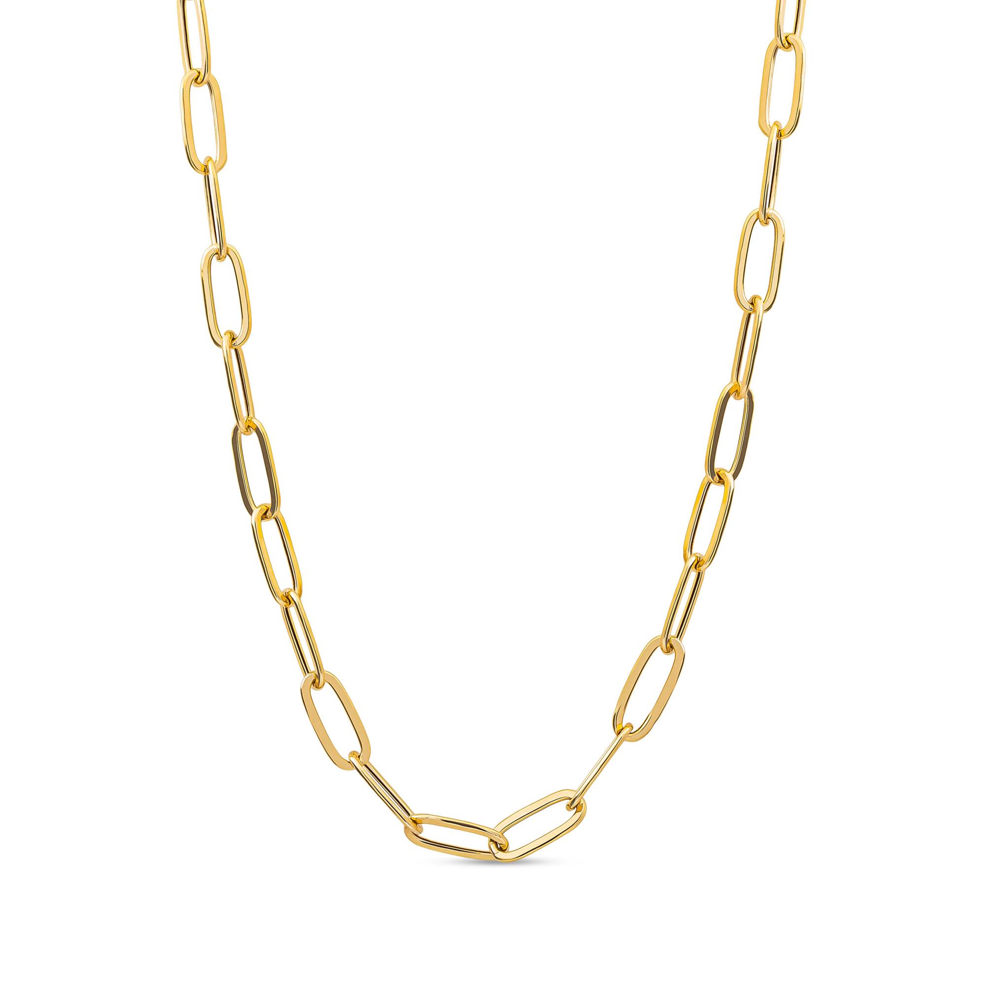 Diese Halskette von L'Atelier Gold 18 Karat by Manor besteht aus überdimensionierten, länglichen Kettengliedern. Sie ist weitenregulierbar und schliesst stilvoll mit einem Karabiner.