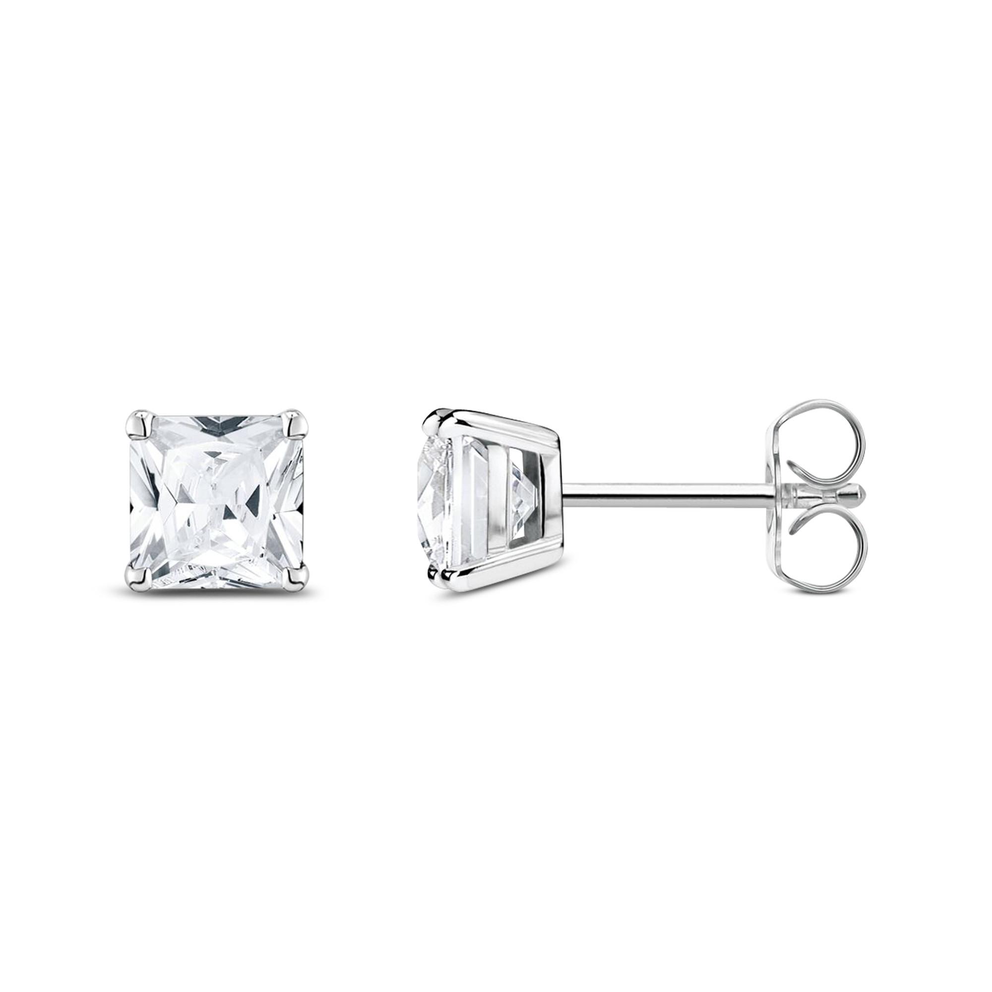 Diese kleinen Ohrstecker von Thomas Sabo sind aus 925er Sterlingsilber gefertigt und mit je einem weissen Zirkonia-Stein im quadratischen Prinzessschliff besetzt. Die Steine sind in einer offenen Krappenfassung eingesetzt, wodurch ihr Farbenspiel besonders intensiv zur Geltung kommt. Die Ohrstecker werden mit einem Steckverschluss geschlossen.