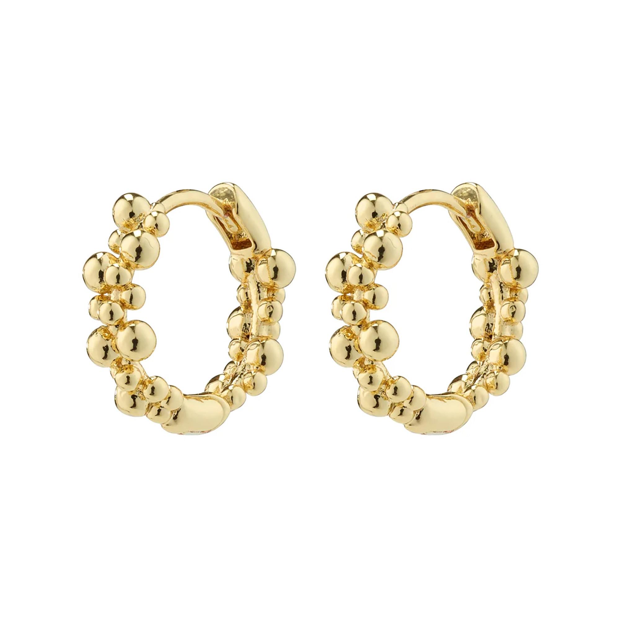 Die goldplattierten SOLIDARITY-Creolen von Pilgrim haben ein verspieltes Design mit kugelförmigen Formen in verschiedenen Grössen, das einen fröhlichen und energischen Ausdruck schafft. Sie haben ein glänzendes Finish, einfach zu bedienende Click-Locks und bestehen zu neunundneunzig Prozent aus recycelten Materialien.