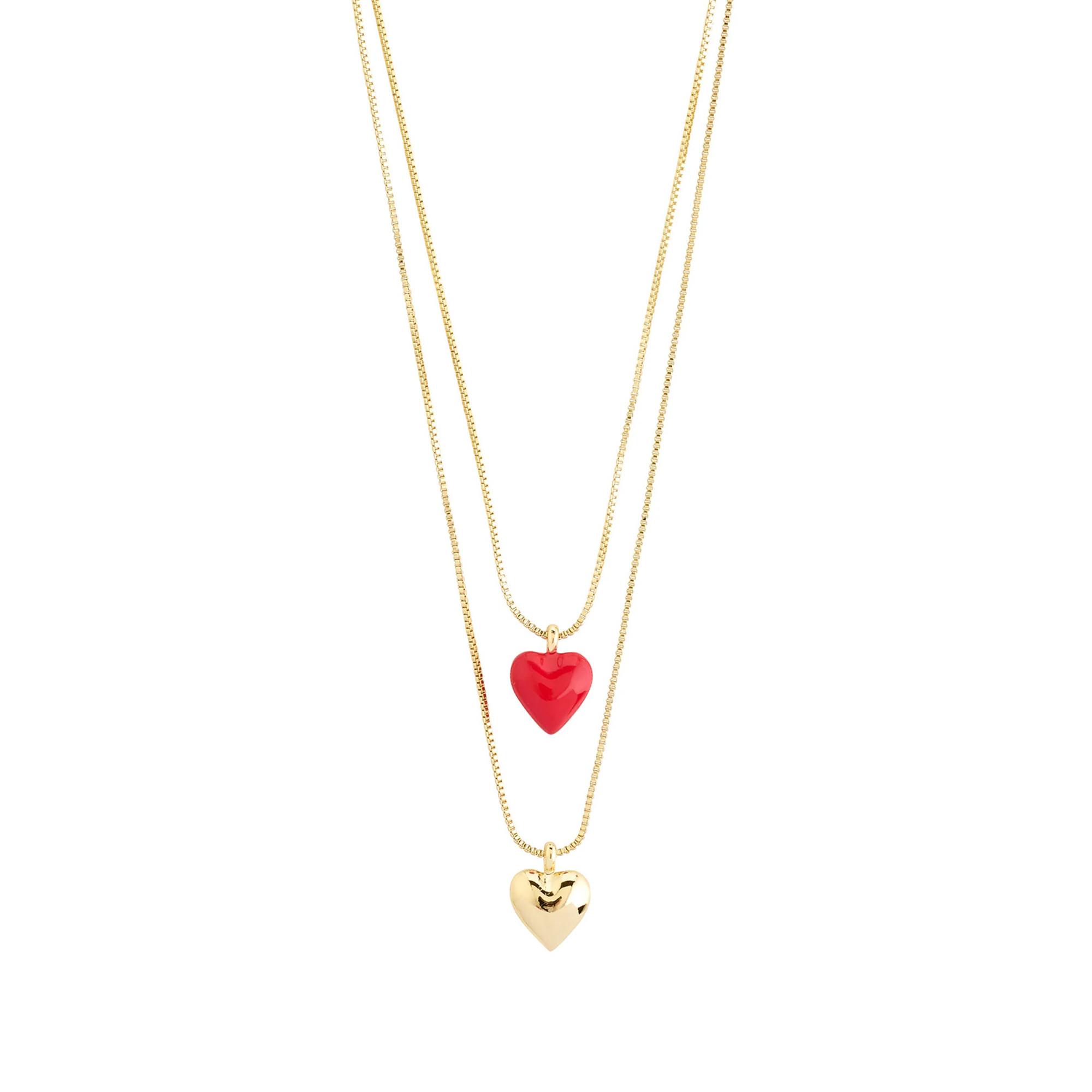 Lassen Sie Ihr Herz höher schlagen mit den vergoldeten Herz-Halsketten von Pilgrim! Dieses Set enthält zwei Ketten mit schlanken Boxketten: eine mit einem dickeren Herzanhänger und die andere mit einem Herzanhänger aus roter Emaille. Perfekt für einen mühelos eleganten Look, ob einzeln oder im Lagenlook getragen. Hergestellt aus 97 % recycelten Materialien, sind sie eine nachhaltige Wahl, die Sie stolz tragen können.