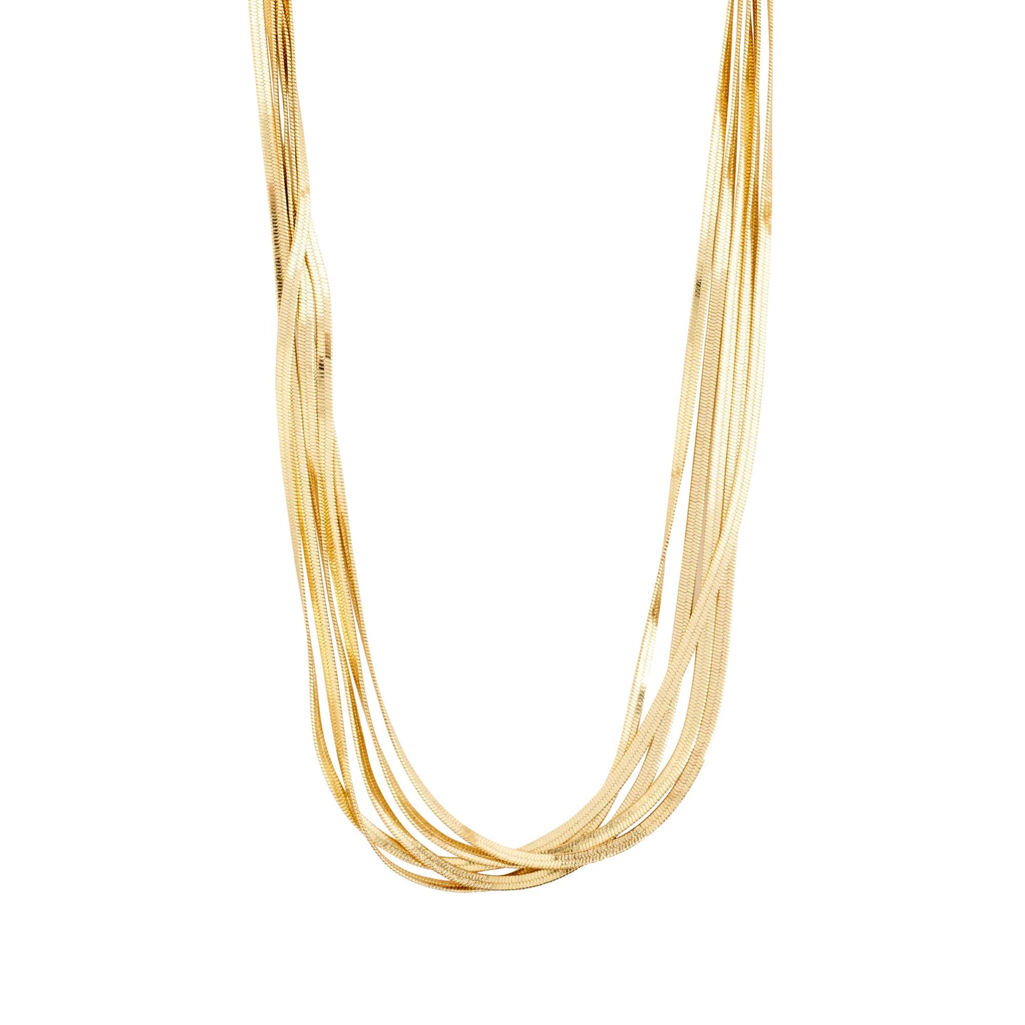 Vertrauen Sie auf die Reise Ihres Herzens mit der IMAGINATION Kollektion von Pilgrim. Die vergoldete KIRA Halskette, bestehend aus fünf flachen Schlangenketten, schafft eine einzigartige skulpturale Silhouette und inspiriert zu einem kreativen und kraftvollen Stil. Hergestellt aus 99 % recyceltem Material, ist sie das Must-Have dieser Saison für alltägliche Brillanz.