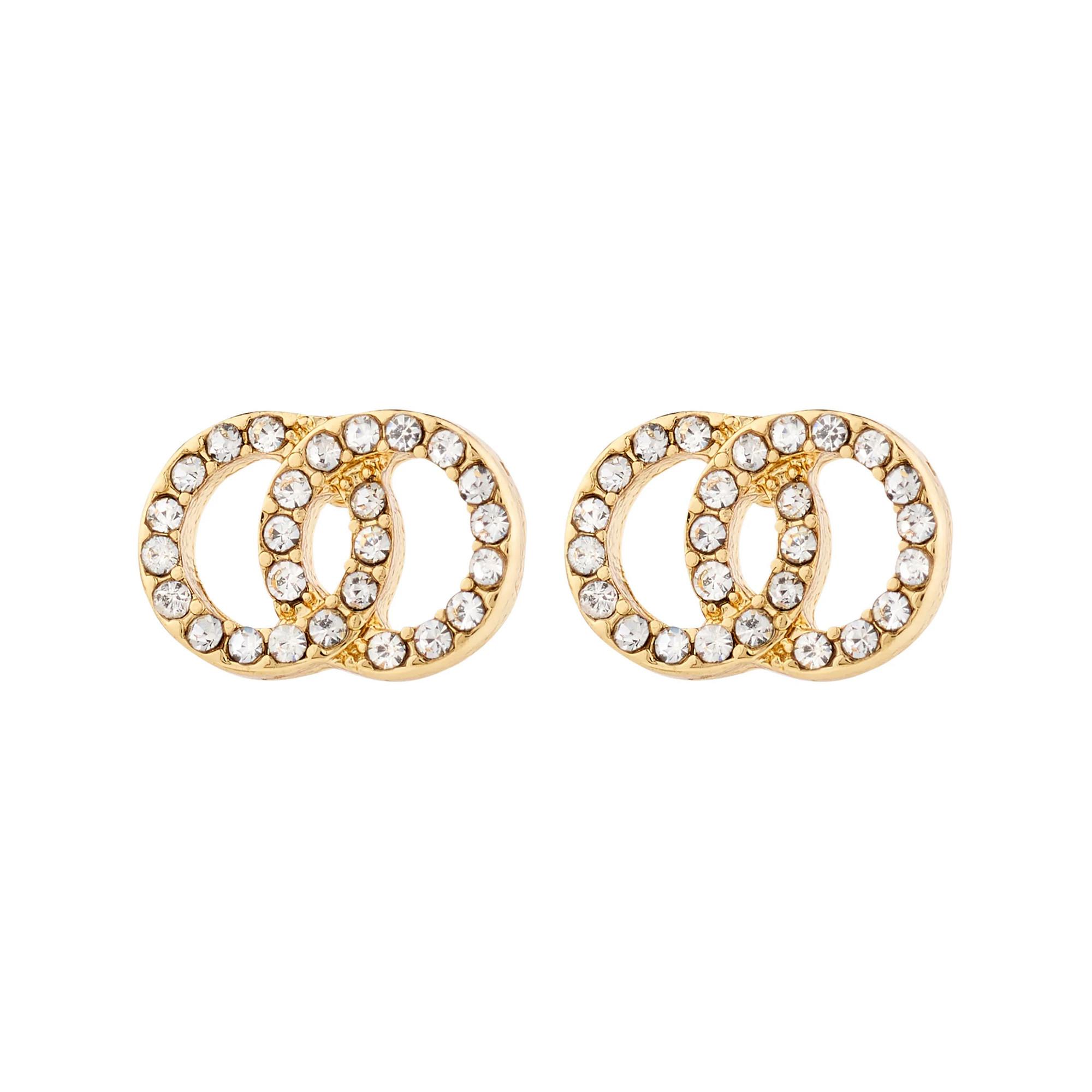 Die funkelnden JOLINA Ohrringe von Pilgrim verdoppeln den Glanz und sind der Beauty-Hack der Saison. Diese vergoldeten Ohrstecker in Form von ineinander verschlungenen Heiligenscheinen, verziert mit Preciosa Kristallen, bestehen zu 82 % aus recyceltem Material und bringen Ihren Look mühelos zum Funkeln.