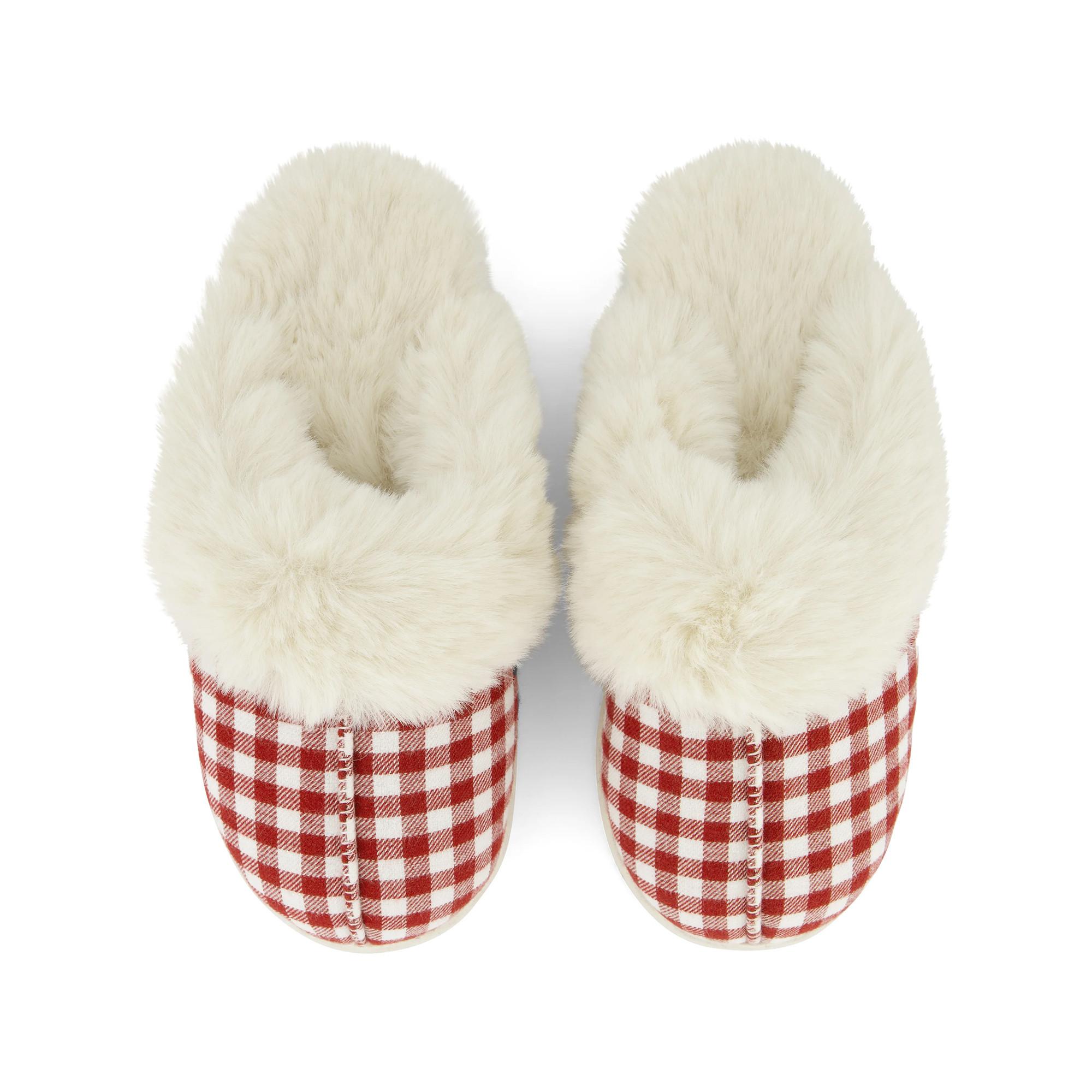 Halte deine Füsse in diesen Hausschuhen schön warm! Die Hausschuhe haben einen Wildleder-Look, ein weiches Fussbett und flauschige Details. Kombinierbar mit einem passenden Nachtset für einen kompletten Look!