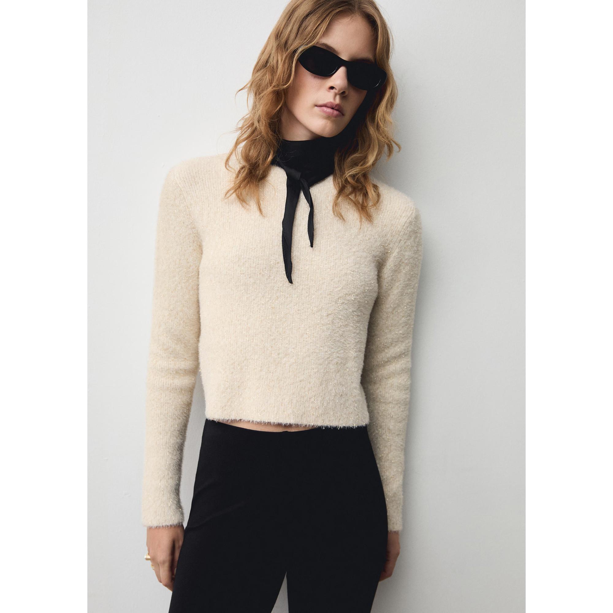 Dieser Langarmpullover besticht durch seine eingearbeiteten Glitzerfäden und den klassischen Rundhalsausschnitt. Er ist aus normalem Strick gefertigt und hat ein gerades Design. Die langen Ärmel runden das Design ab.