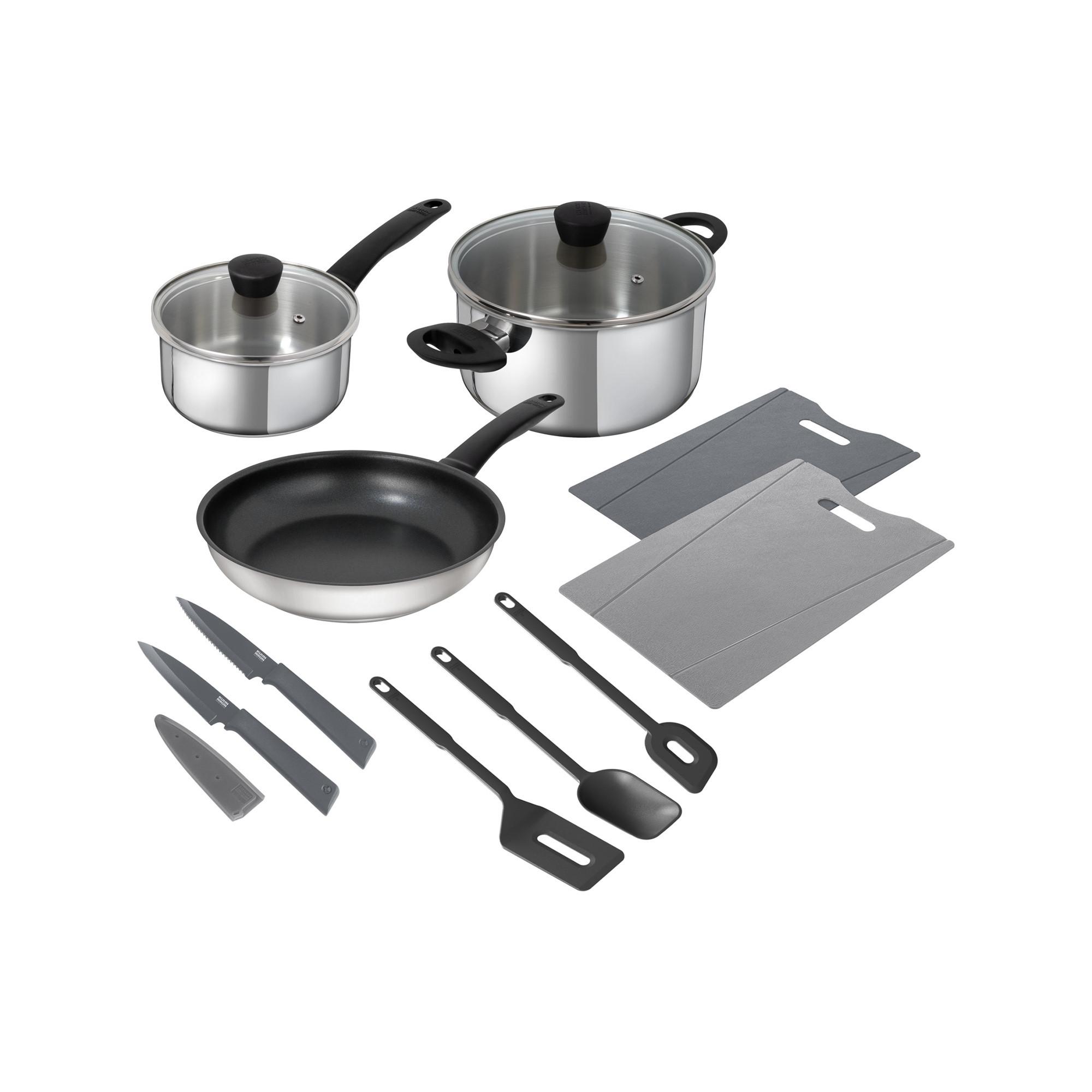 Perfekt ausgestattet für jede Küche – das praktische Küchen-Set vereint hochwertiges Kochgeschirr mit vielseitigen Küchenhelfern und scharfen Messern. Ideal für den täglichen Einsatz und einfach in der Handhabung.