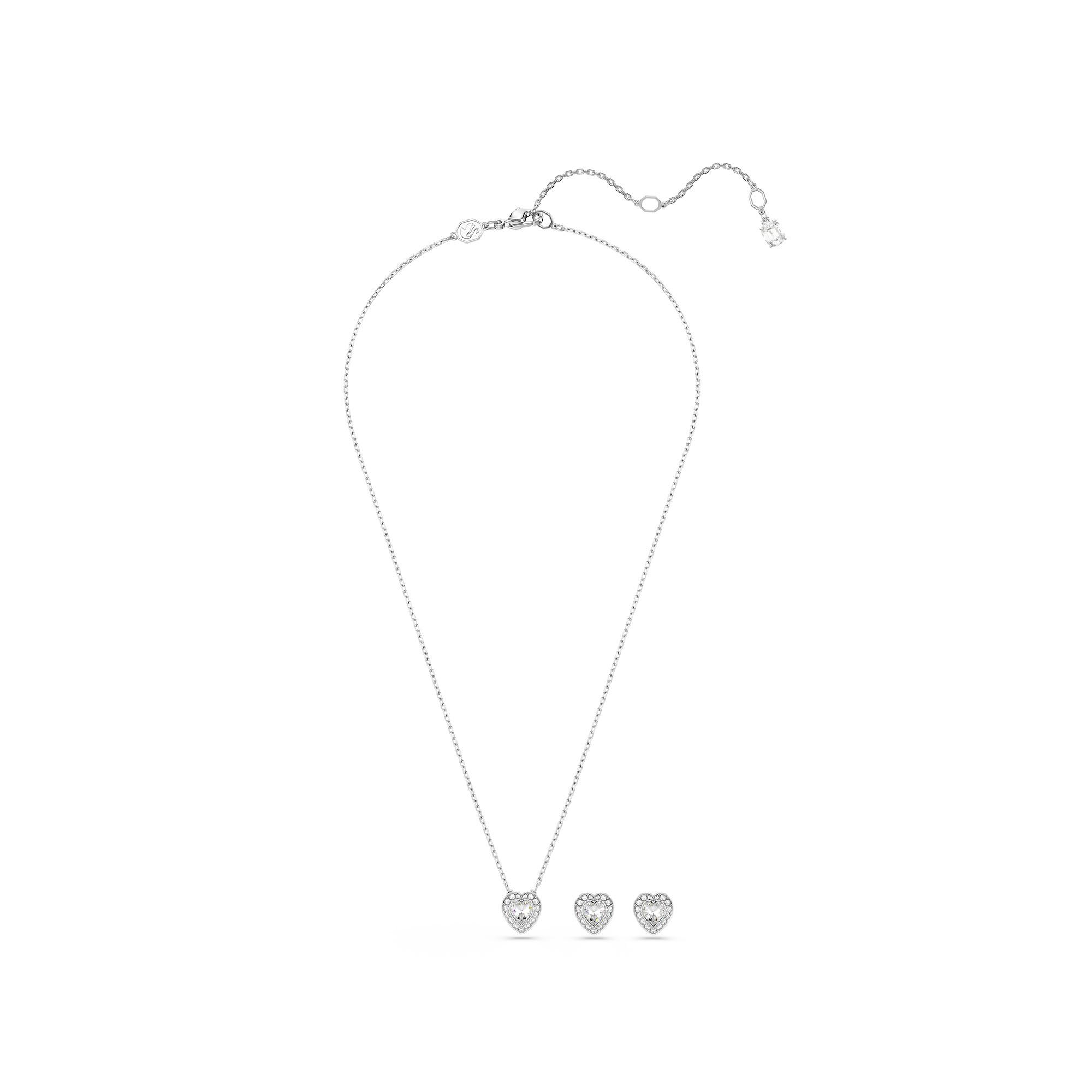 Dieses Swarovski Schmuckset ist wie geschaffen für romantische Seelen. Das rhodinierte Set enthält einen Anhänger und ein Paar zierliche Ohrstecker, die jeweils mit einem Kristallherzen verziert sind, umgeben von einem hellen Strahlenkranz in klarem Pavé. Verschenken Sie dieses lichtreflektierende Set an einen geliebten Menschen als Zeichen Ihrer Zuneigung.