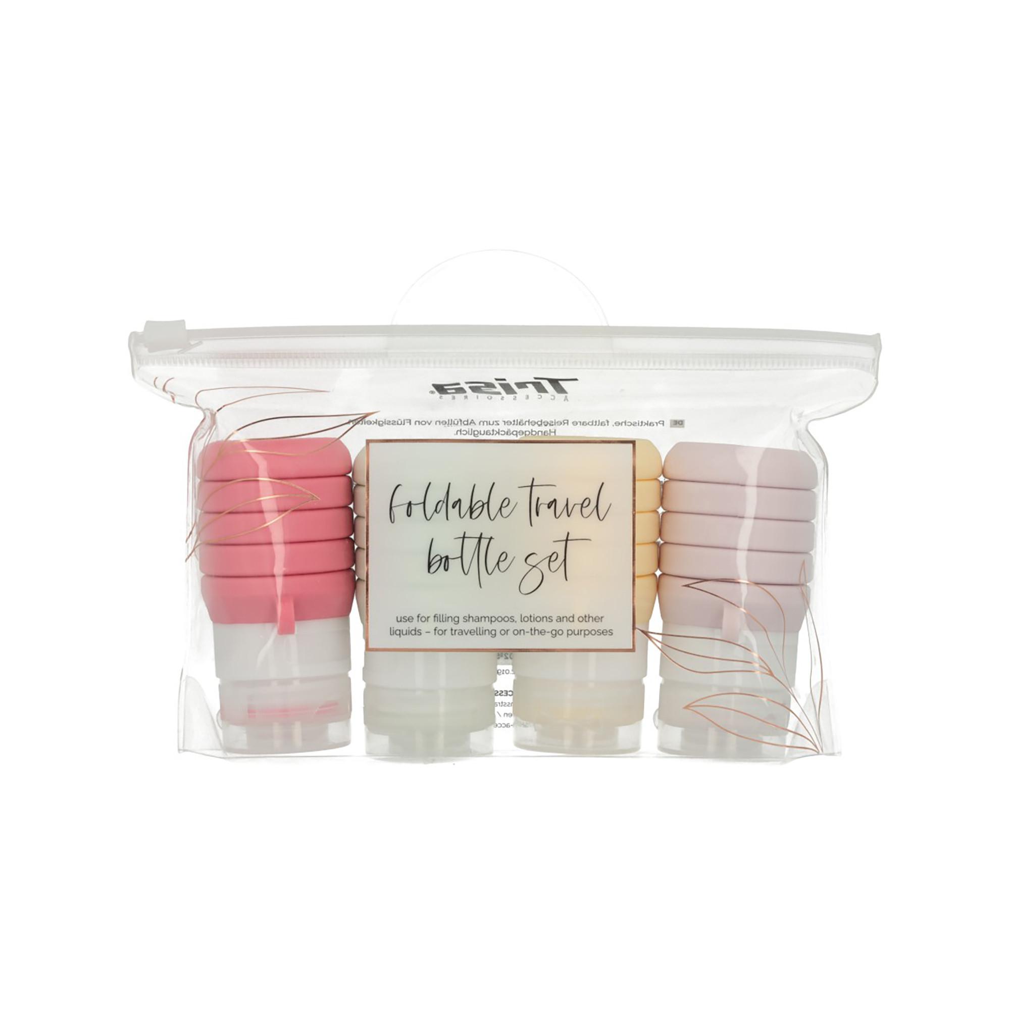 Das TRISA Accessoires Travel-Set ist dein perfekter Begleiter für unterwegs! Die 4 wiederverwendbaren faltbaren Soft-Flaschen in stilvollen Pastelltönen bieten Platz für Shampoo, Lotion oder andere Flüssigkeiten. Sie lassen sich einfach befüllen und platzsparend verstauen. Der auslaufsichere Verschluss sorgt für sorgenfreies Packen – ideal für Flugreisen oder den Alltag. Leicht, praktisch und umweltfreundlich!