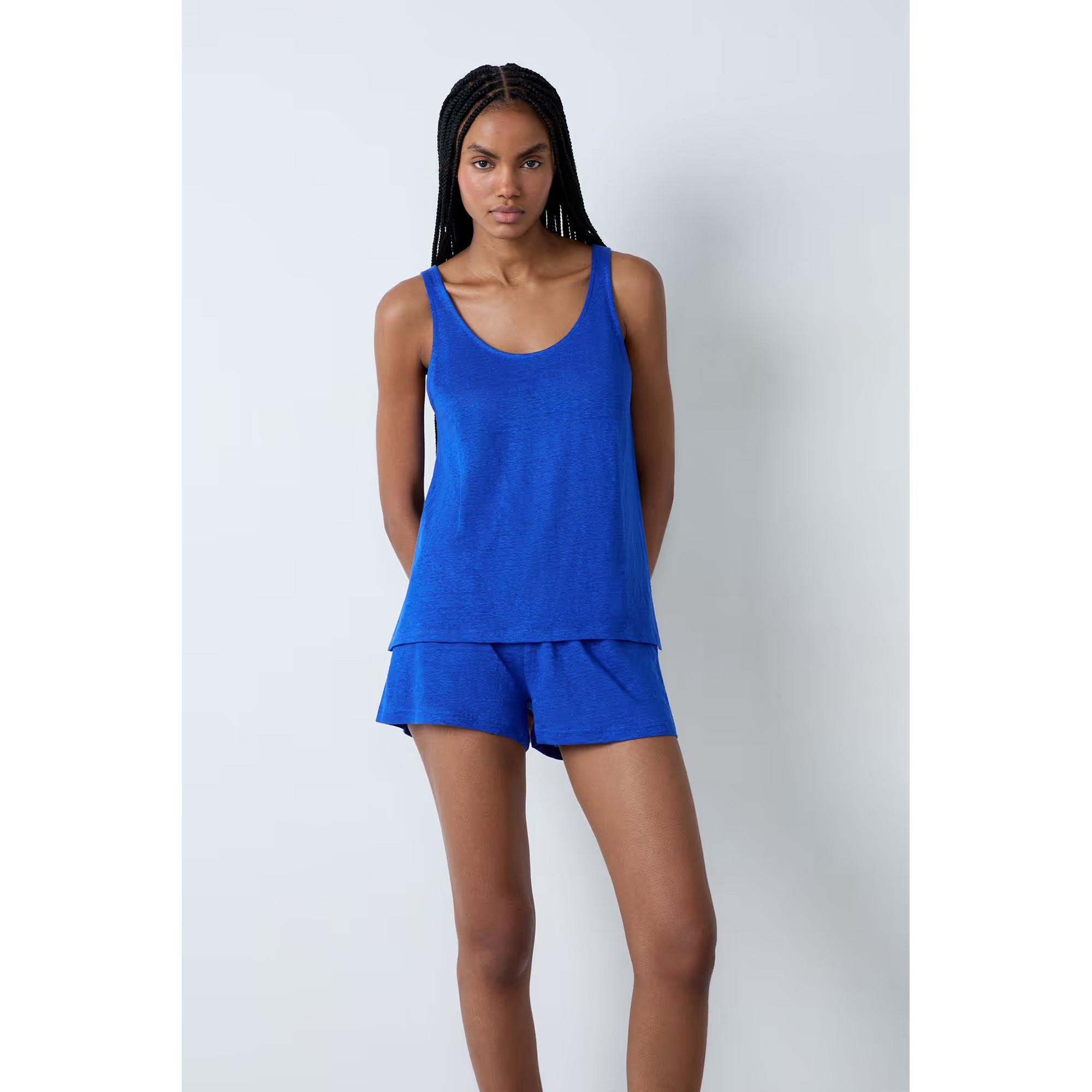 Dieses ärmellose Pyjama-Top aus Leinen überzeugt durch seine natürliche Leichtigkeit und den angenehm weichen Griff. Mit rundem Ausschnitt bietet es idealen Komfort für warme Nächte.